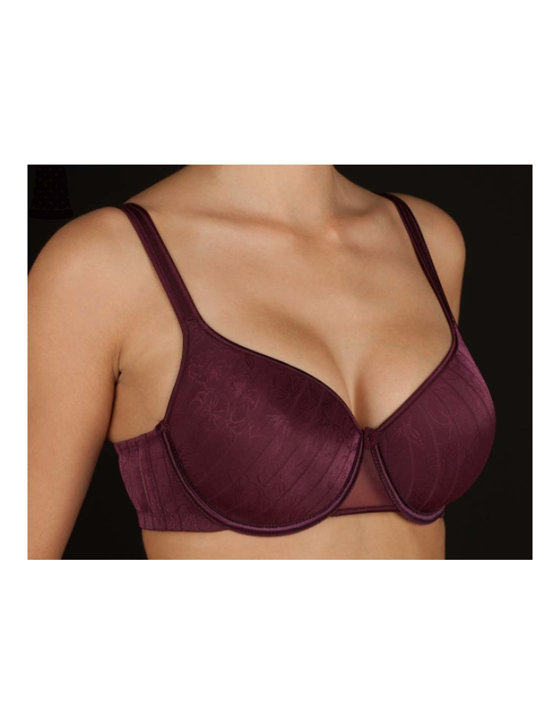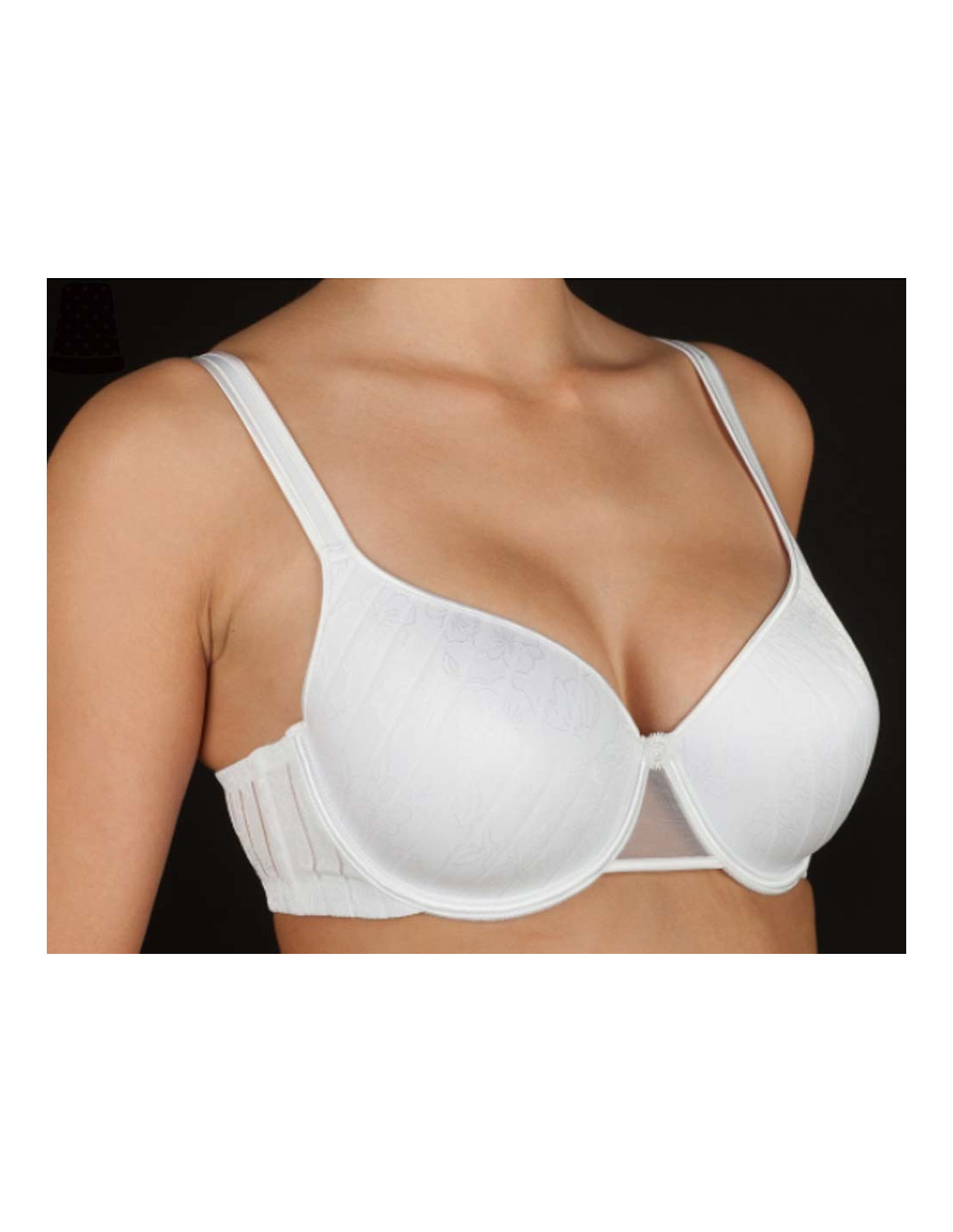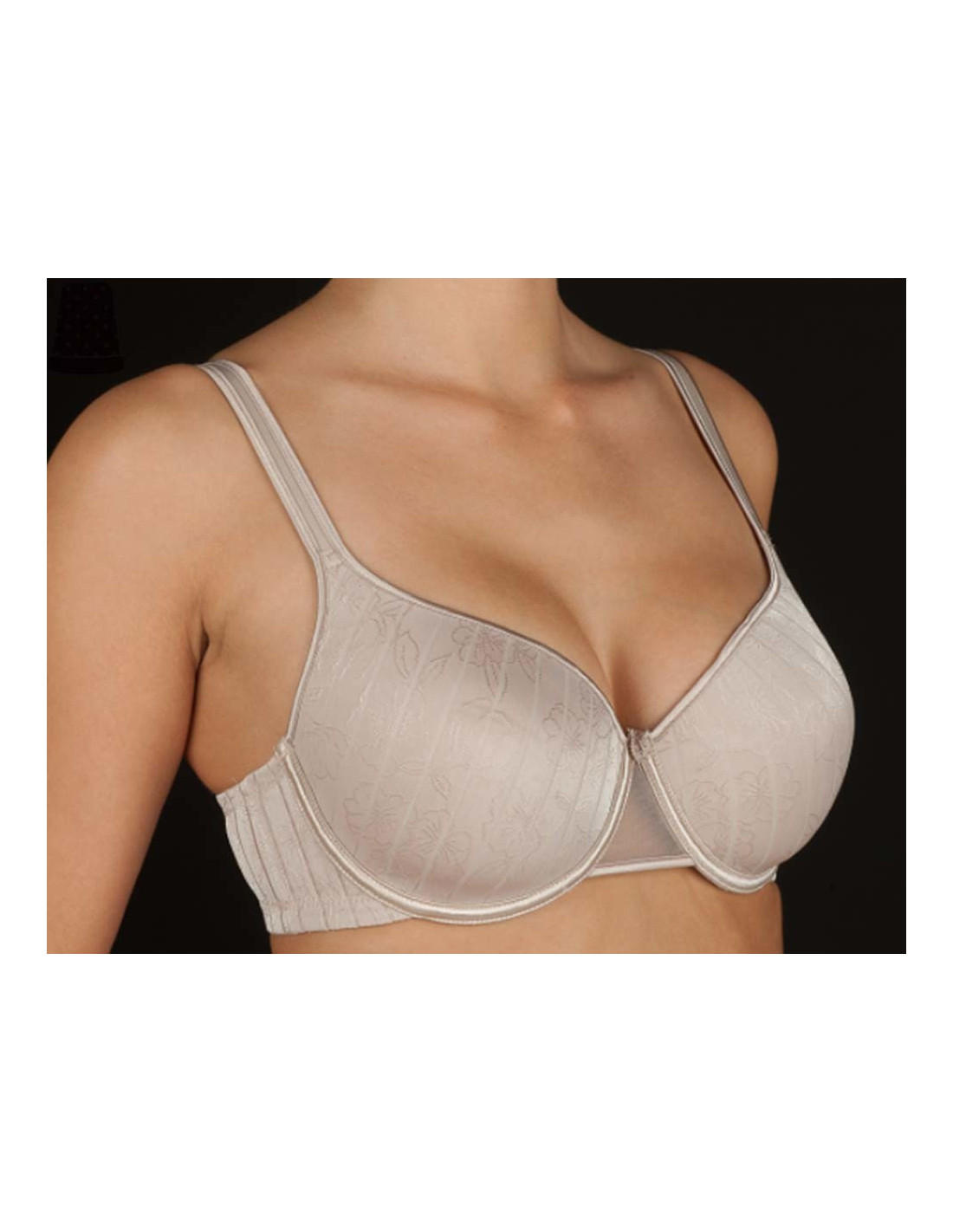Sujetador con relleno simple (foam) y aros. El tejido a rayas y floreado muy discreto y elegante. El relleno simple consigue una forma redondeada de tu pecho, sin darle más volúmen. Puede conjuntar este sujetador con la braguita Vanessa de la misma marca. Composición: 88% poliéster y 12% elastano. Se recomienda seguir los consejos del etiquetado. Los COLORES no están disponibles en todas las tallas. Para comprobar la disponibilidad, primero debe seleccionara la "Talla" en el desplegable y después el "Color". A partir de ahí, puede ir añadiendo a su carrito las que desee. Artículo disponible hasta fin de existencias. POR HIGIENE, NO SE ADMITE CAMBIO NI DEVOLUCIÓN DE ESTE ARTÍCULO