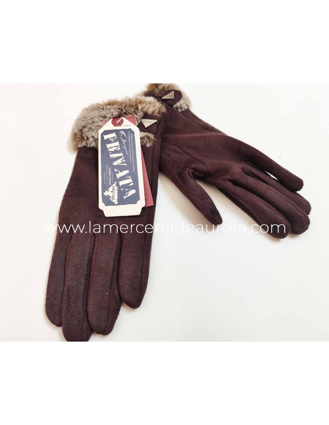 Elegantes guantes para mujer, táctiles, de tejido elástico aterciopelado, con flores grabadas en la parte del dorso.