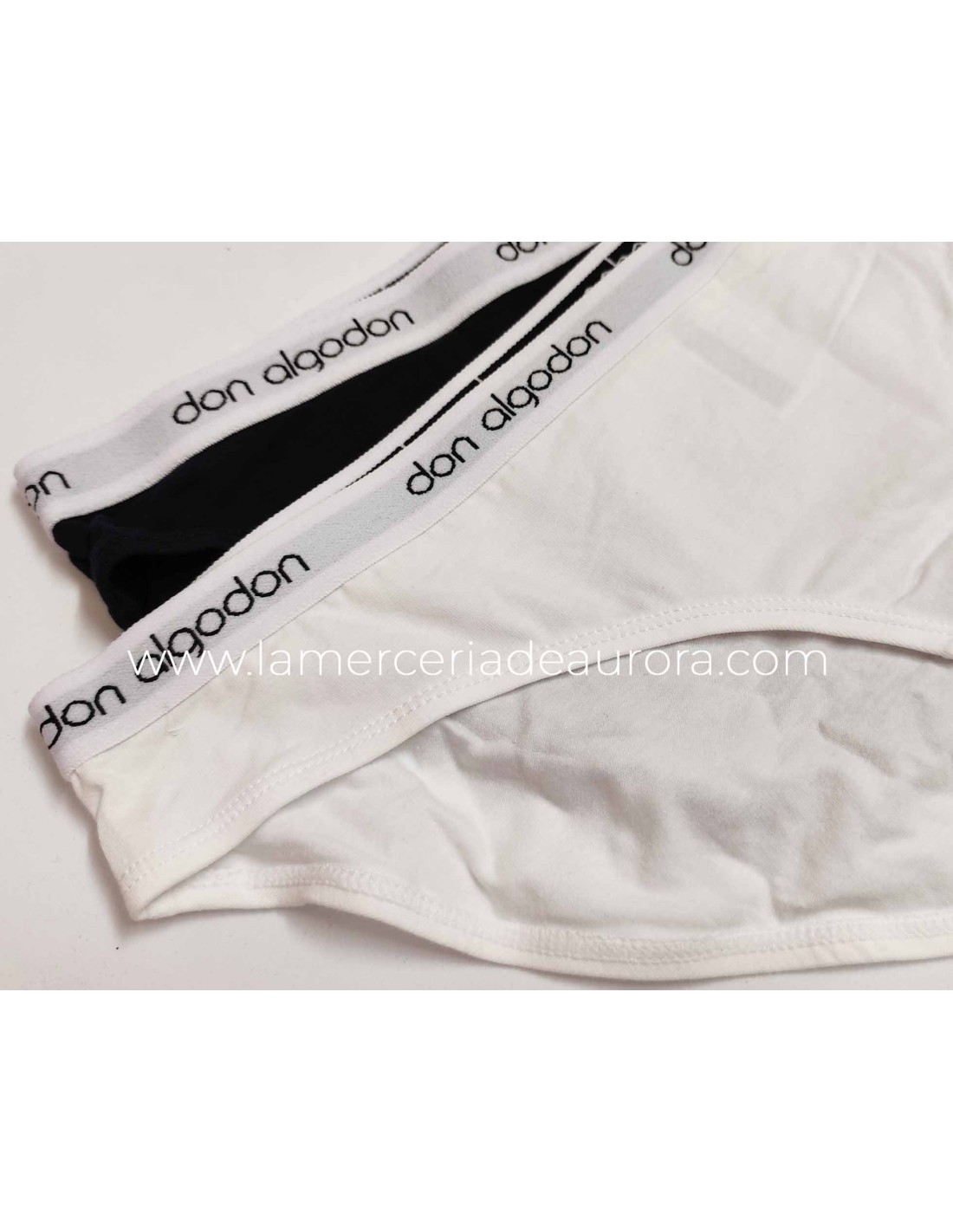 Braga bikini de algodón elástico, con goma vista blanca en la cintura, y logo en la misma.