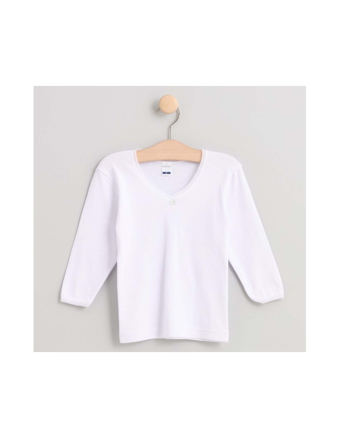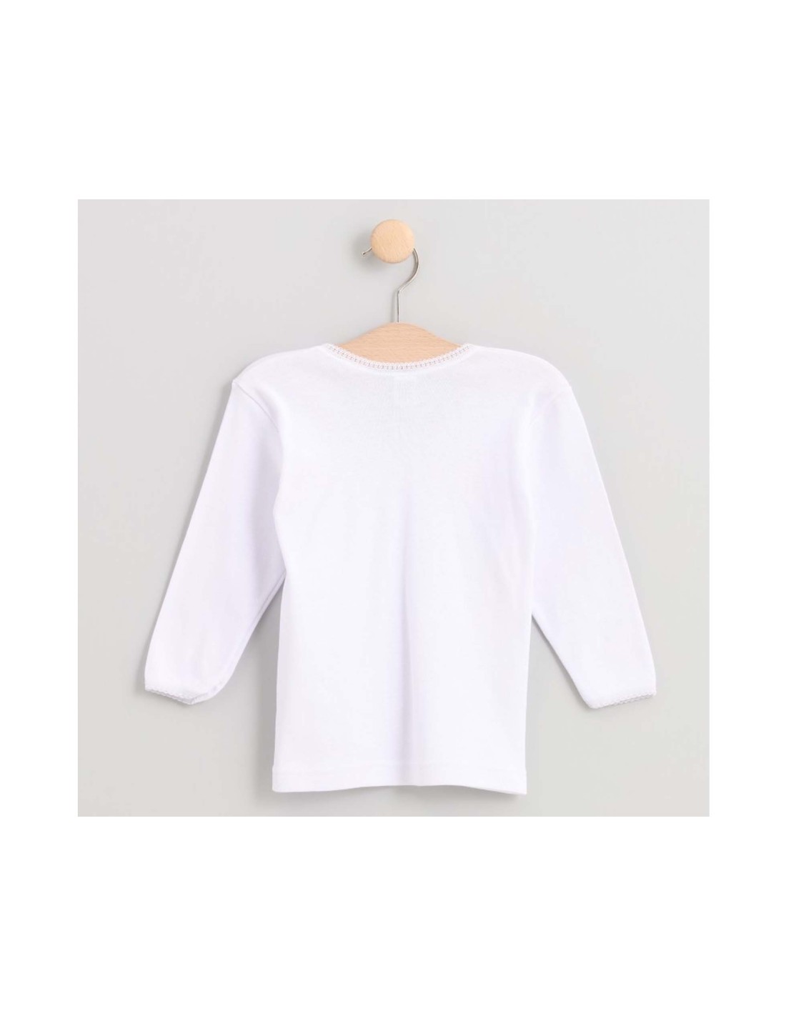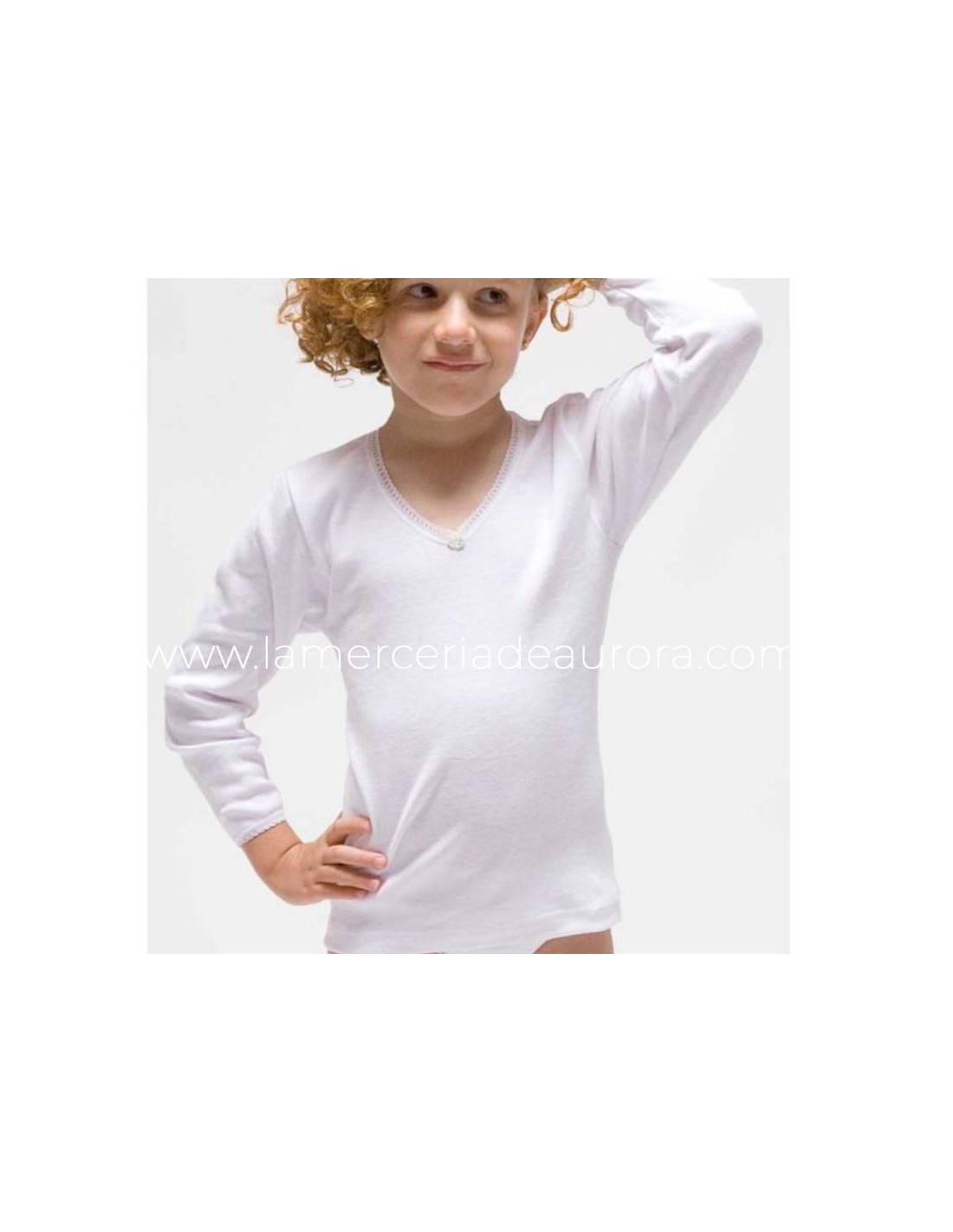 Camiseta interior térmica, en manga larga para niña, sin costuras laterales, en color blanco.