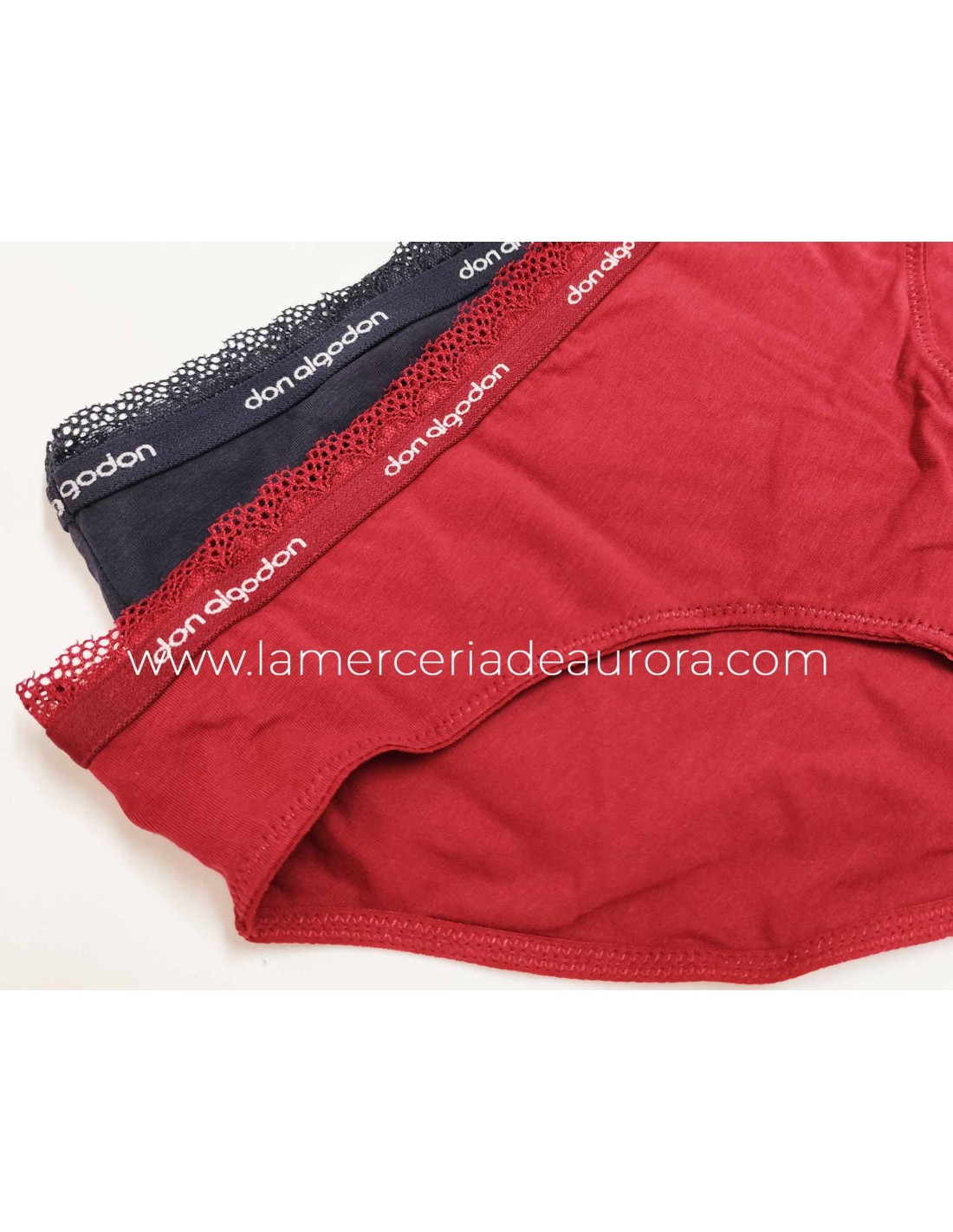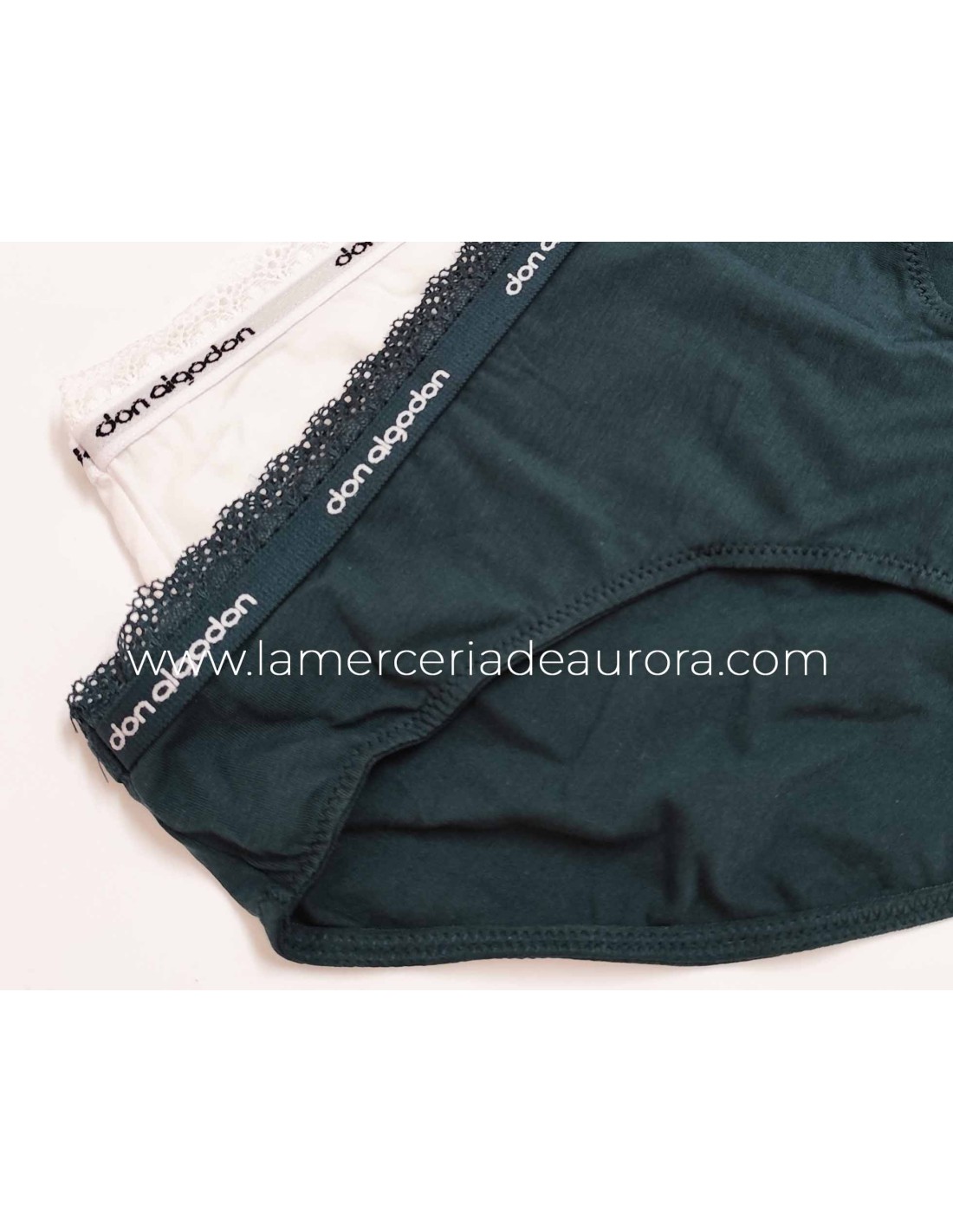 Las braguitas van en pack de dos, en colores surtidos (verde/blanca, antracita/granate y negra/azul).