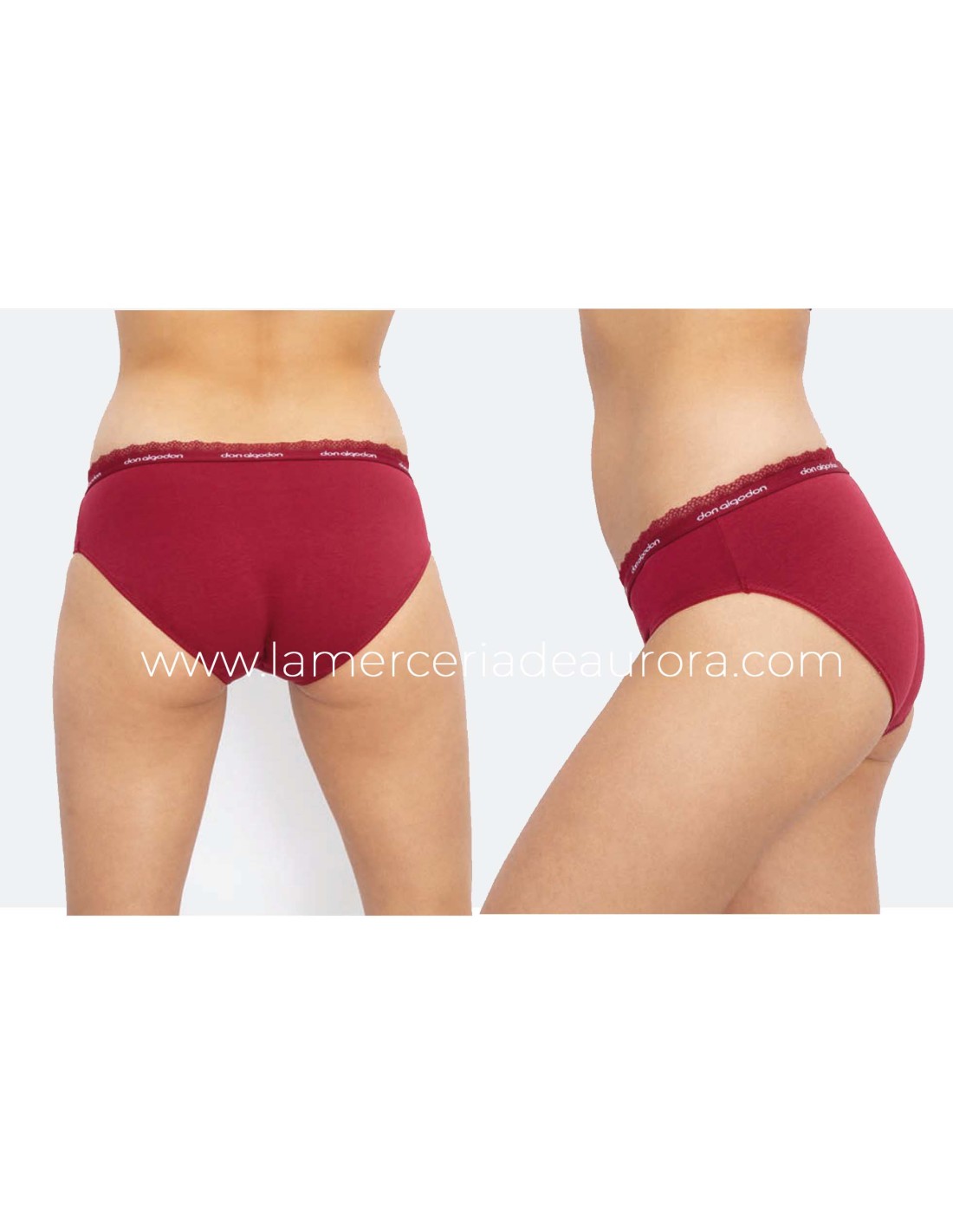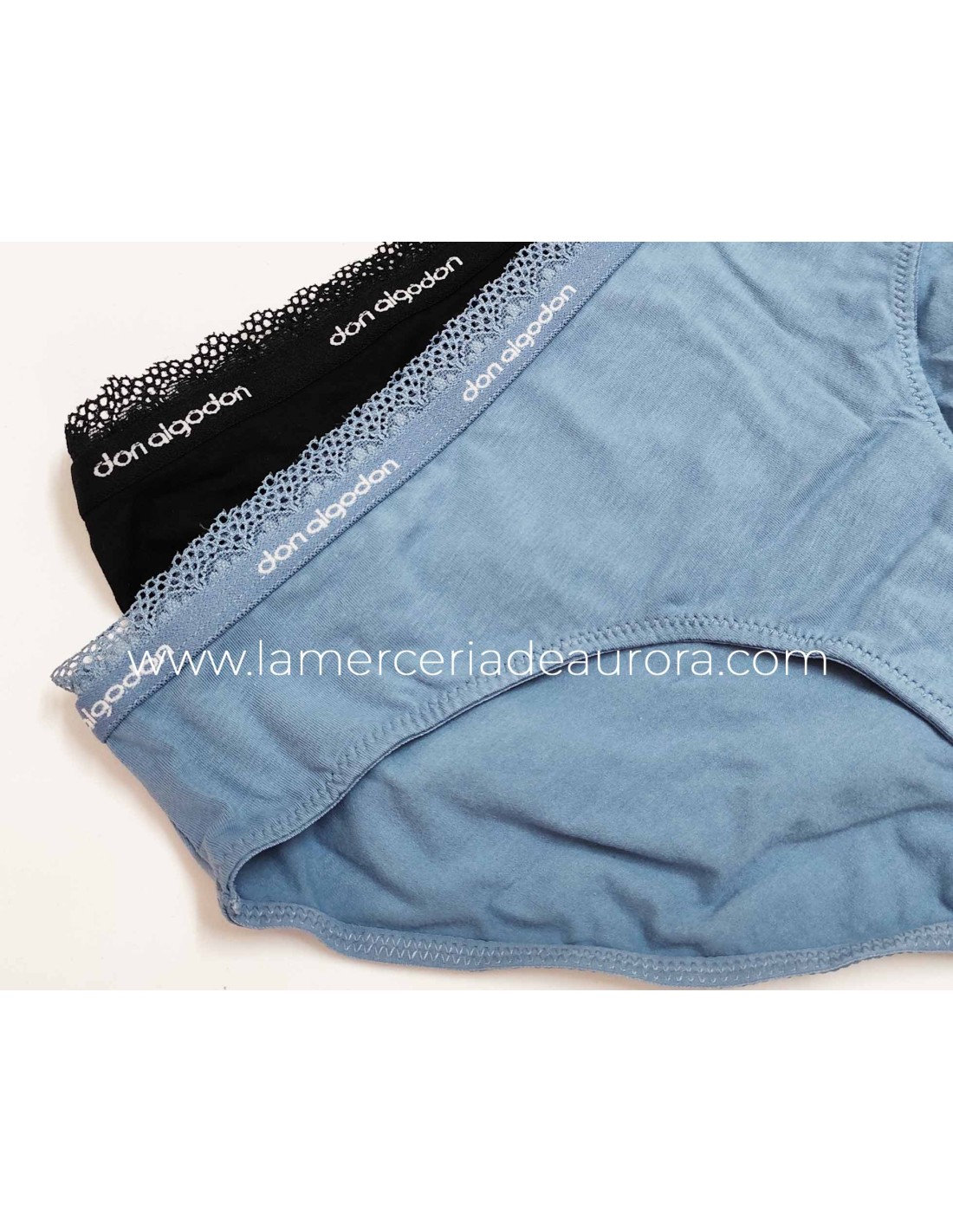 Braga midi de algodón elástico, con elegante blonda en toda la cintura y goma vista con logo de la marca.