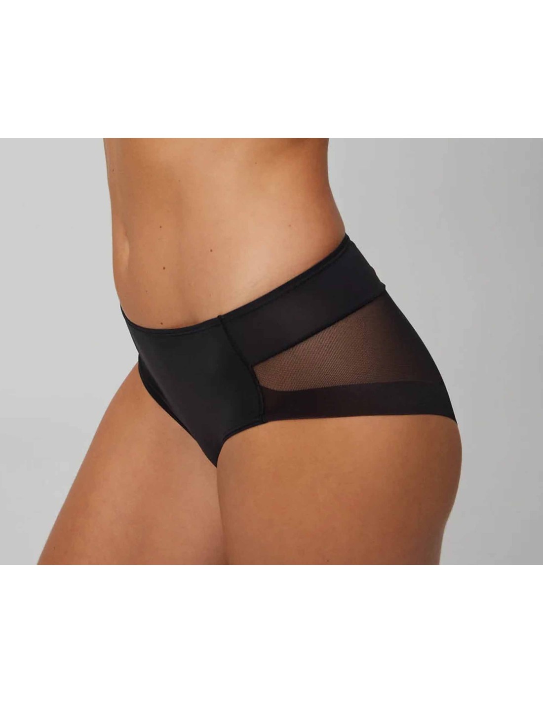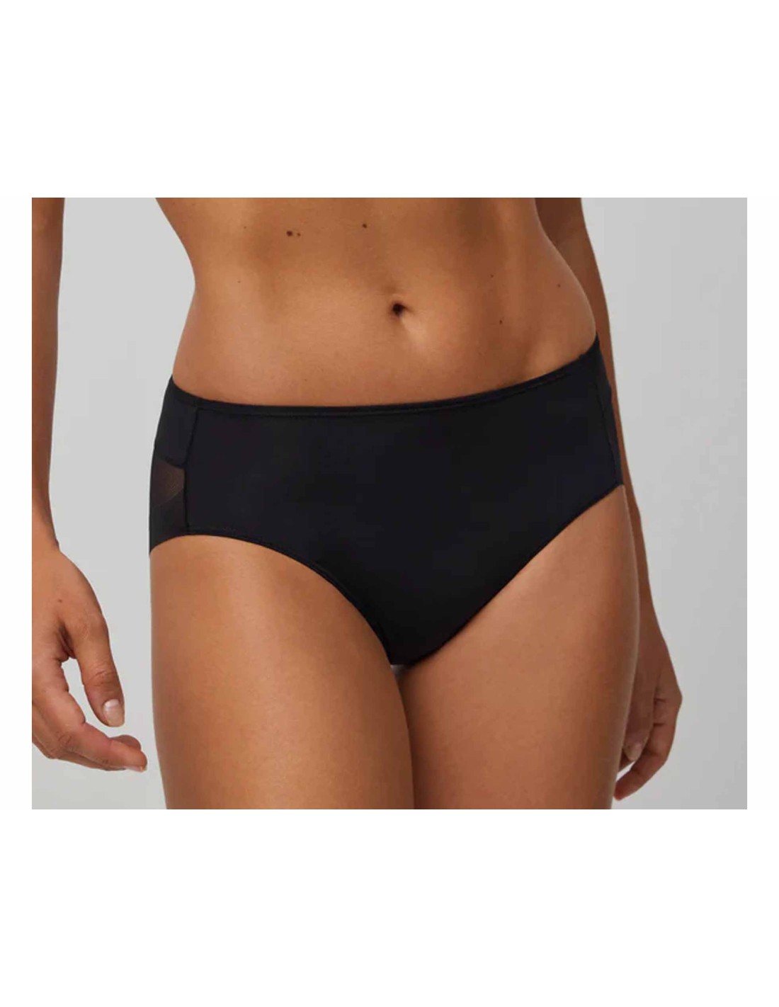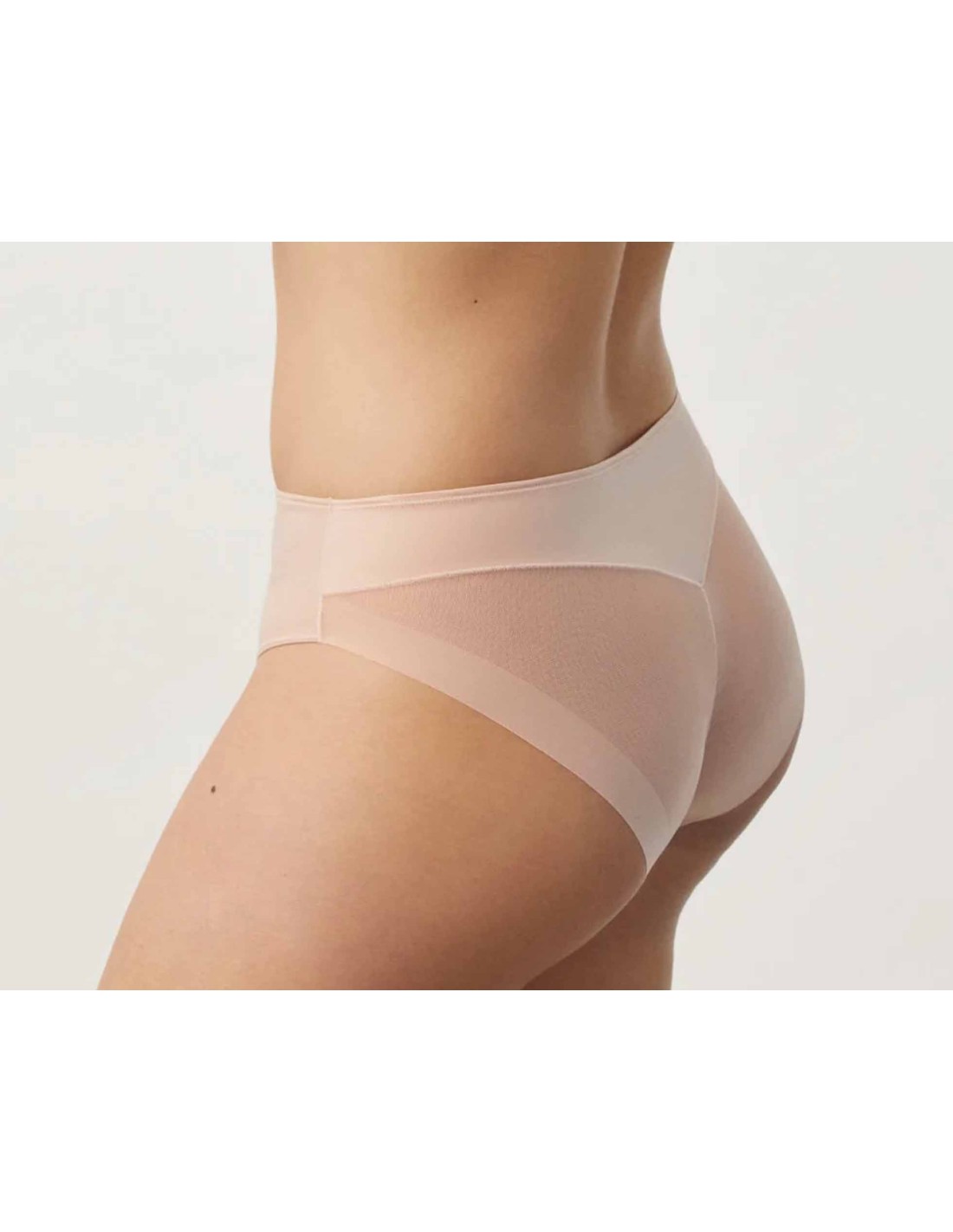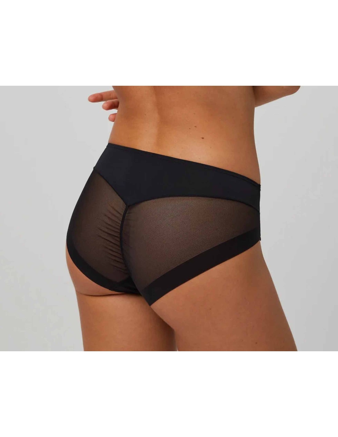 Braga altura MIDI de microfibra, con la parte trasera de tul elástico, de bordes planos y efecto tanga.