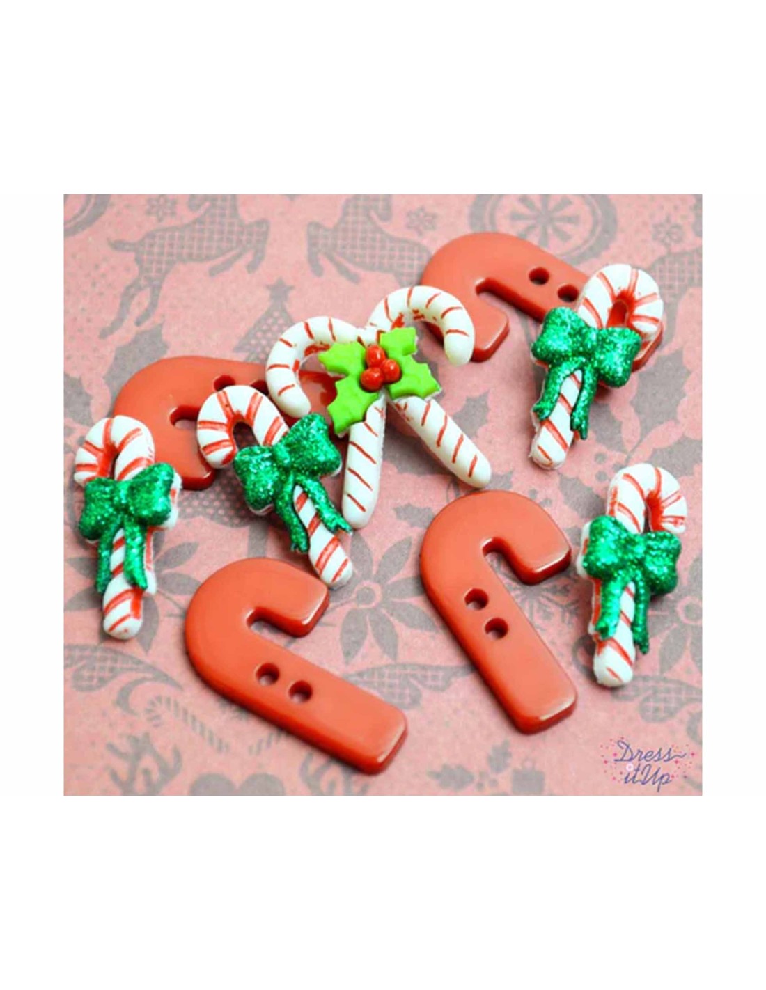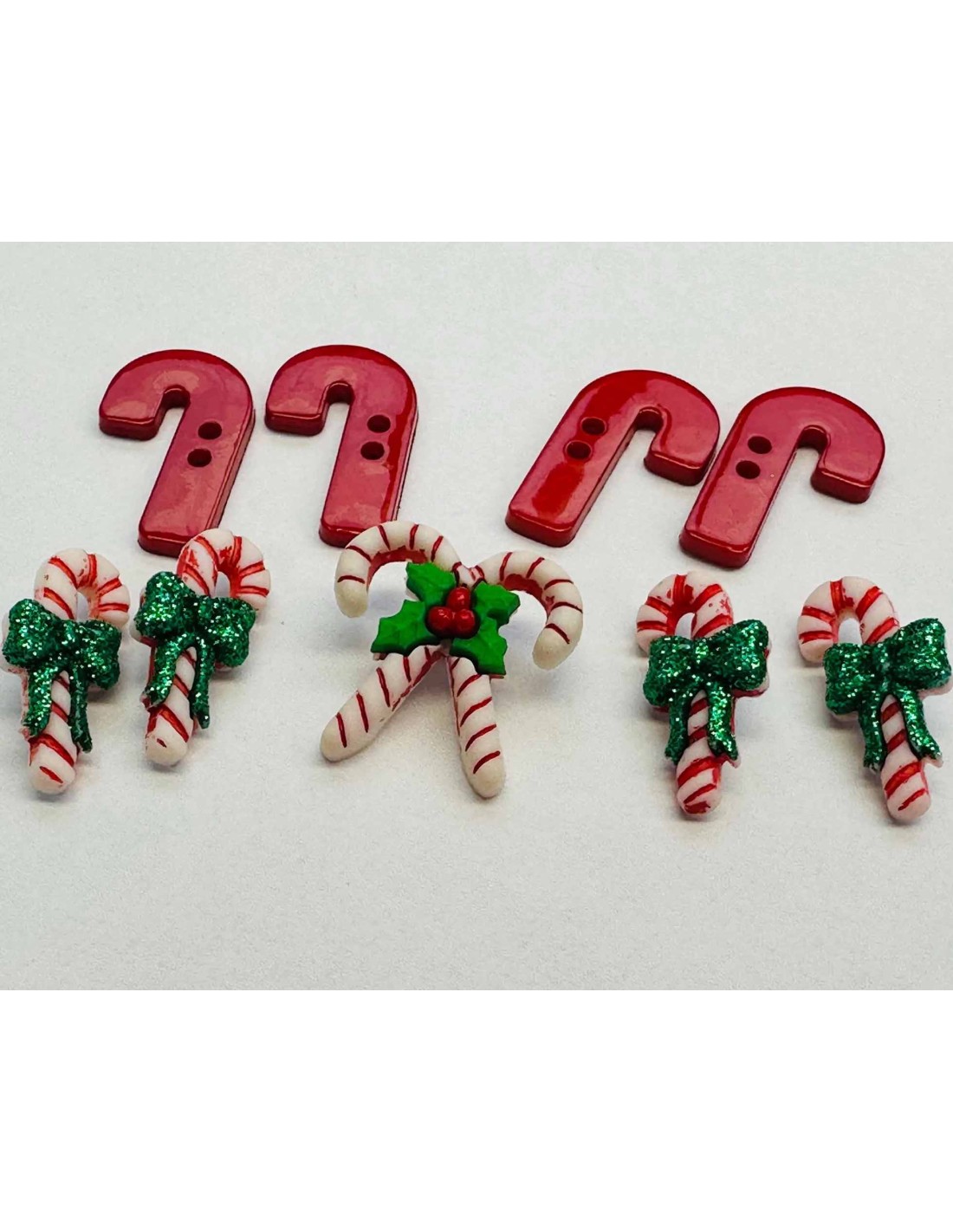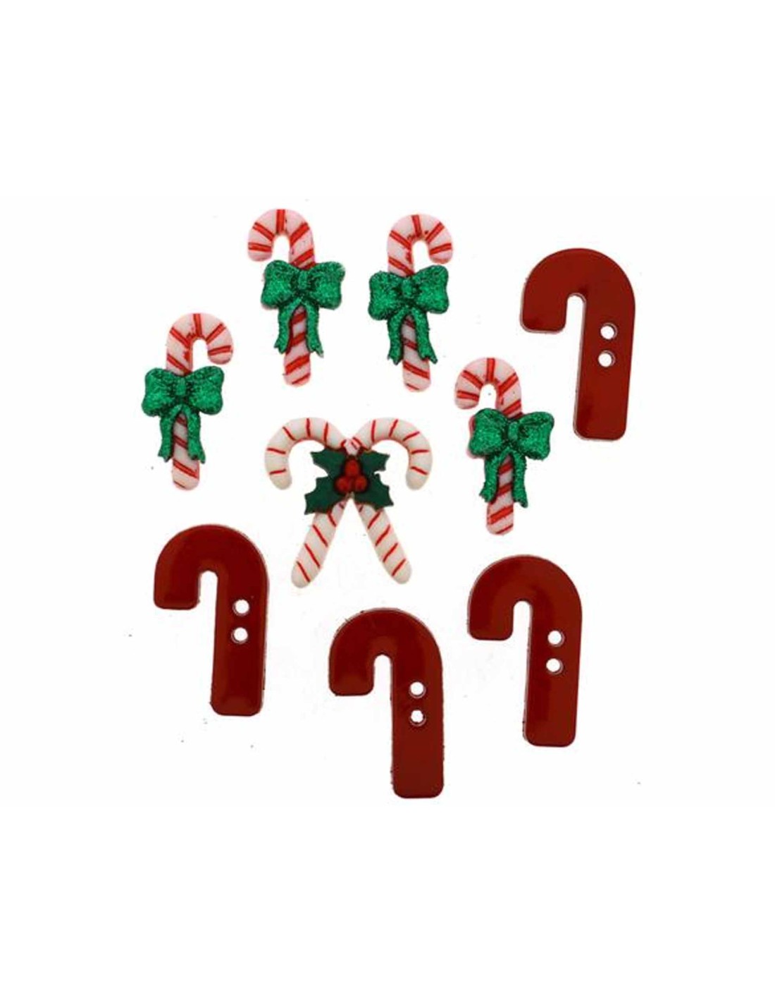 9 botones fantasía decorativos, con formas de BASTONES DE AZÚCAR, de diferentes diseños.