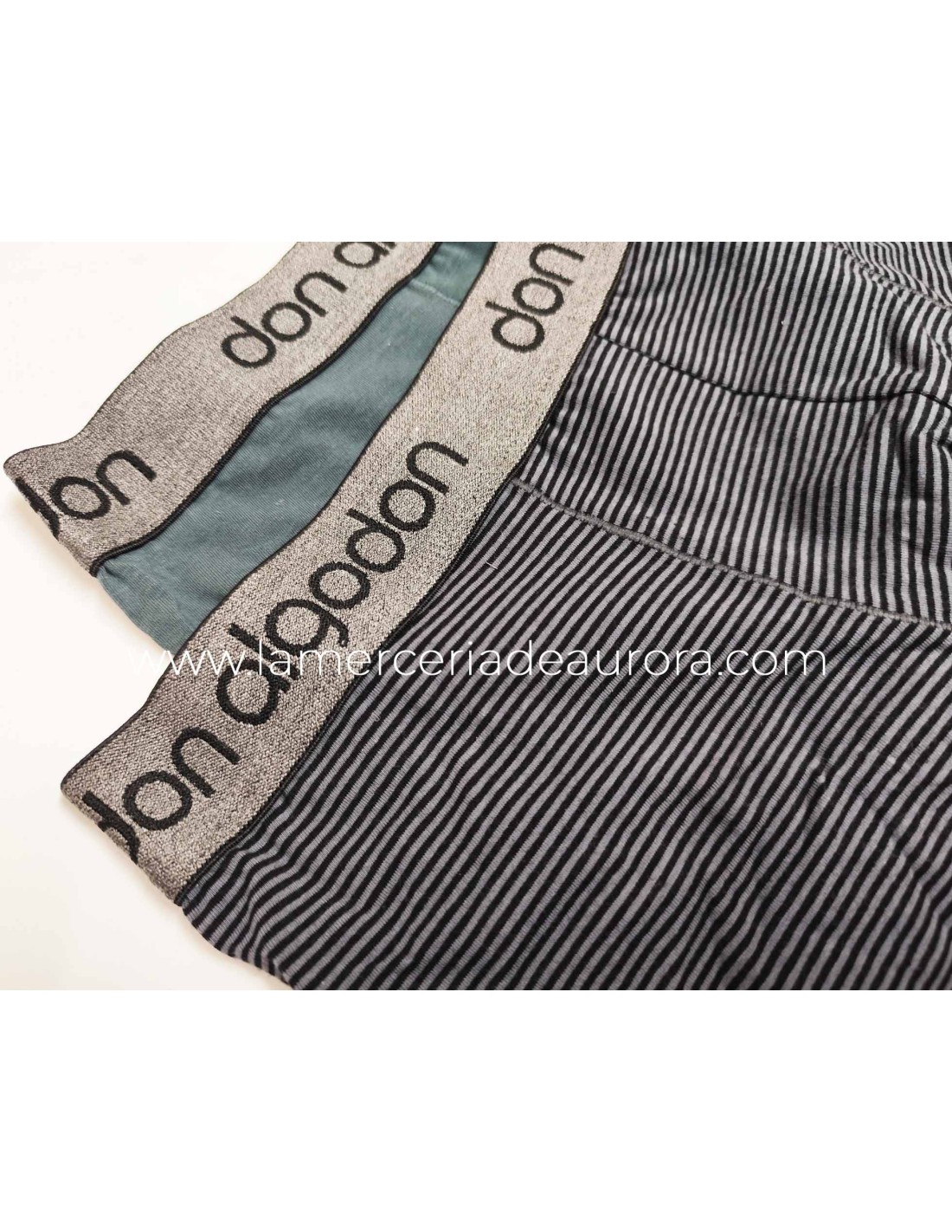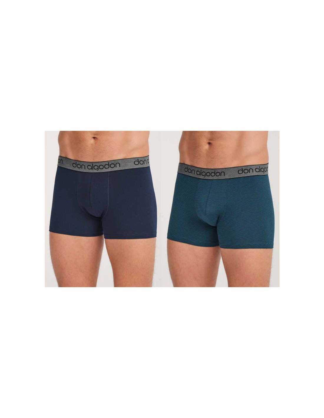 El pack contiene un bóxer liso y el otro, estampado fantasía con rayas finas.