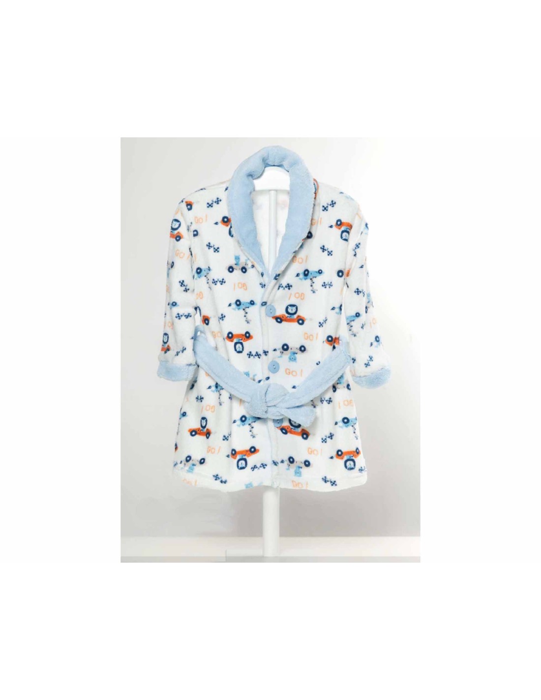 En color blanco, totalmente estampada con COCHES DE CARRERAS, conducidos por ANIMALES.