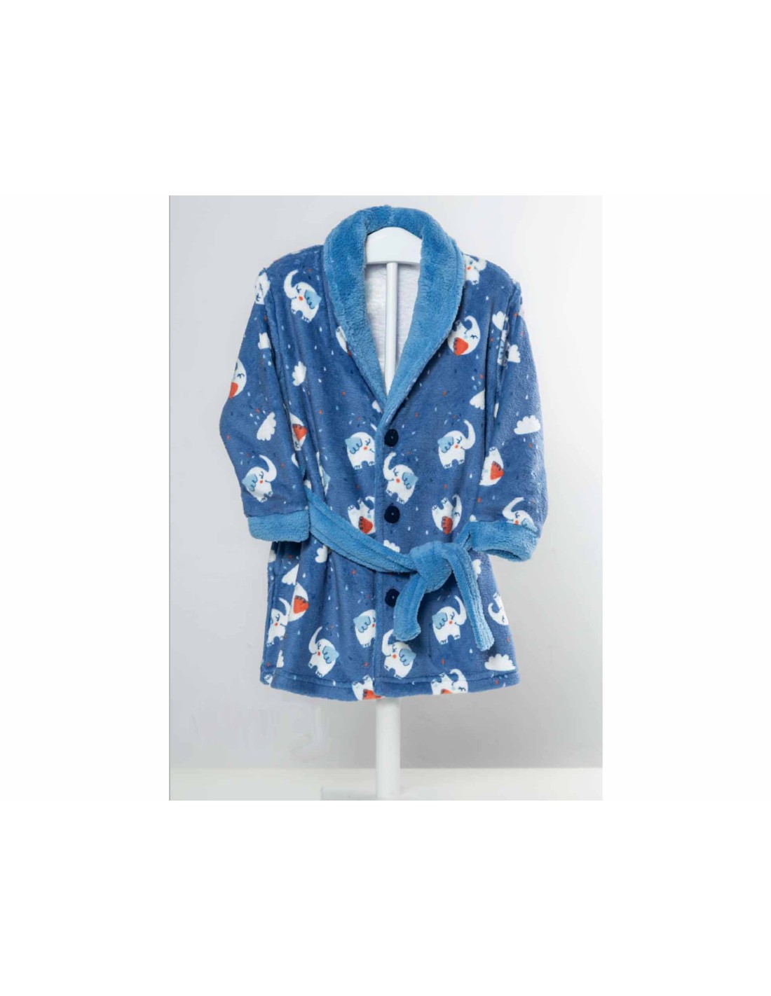 En color azul, totalmente estampada con TIERNOS ELEFANTES.