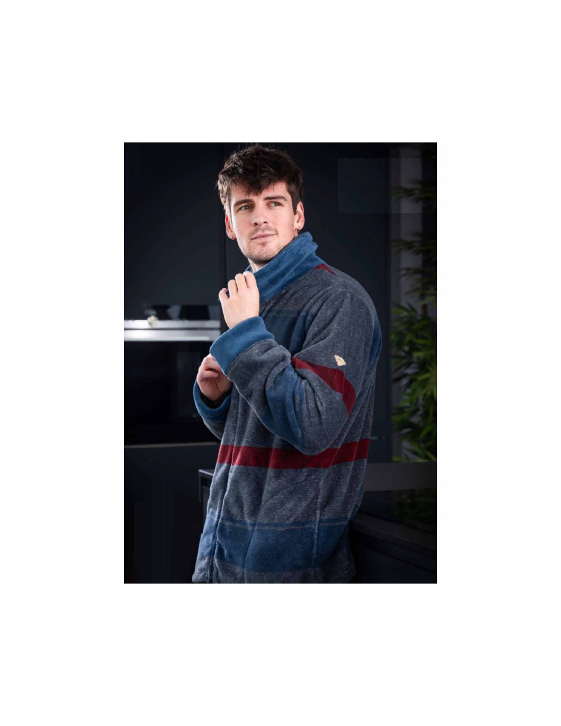 Bata hombre para estar en casa, en tejido coralina (tejido mullido, suave, ligero, cálido y aterciopelado).