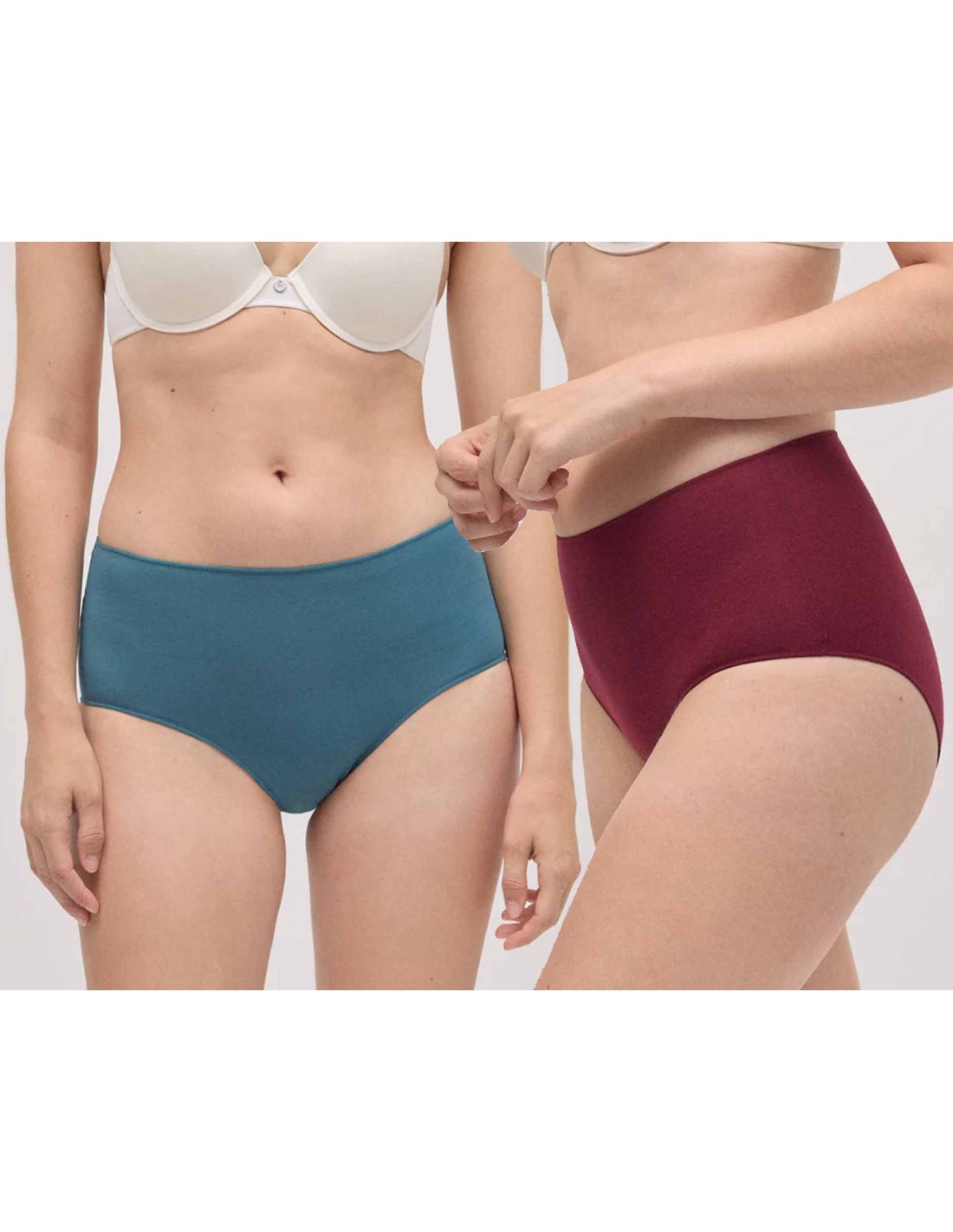 Braga alta lisa, de suave algodón elástico, en colores: granate y petróleo.