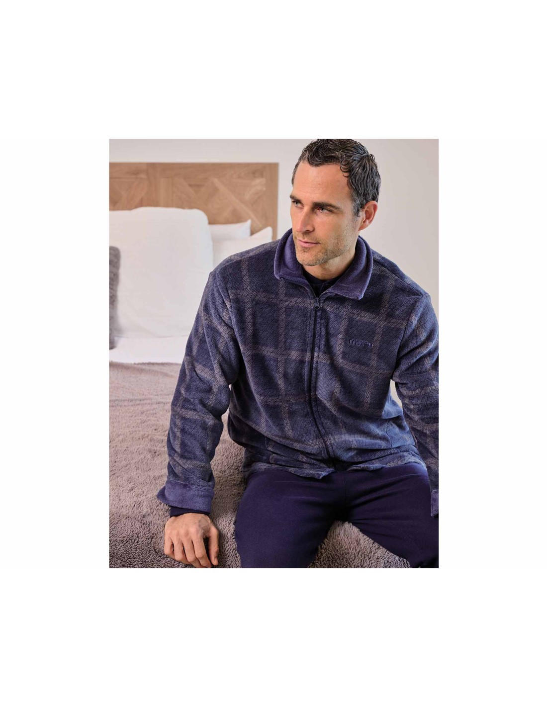 Bata corta hombre coralina cremallera "Cuadros azul y gris" 9605CR de Muslher