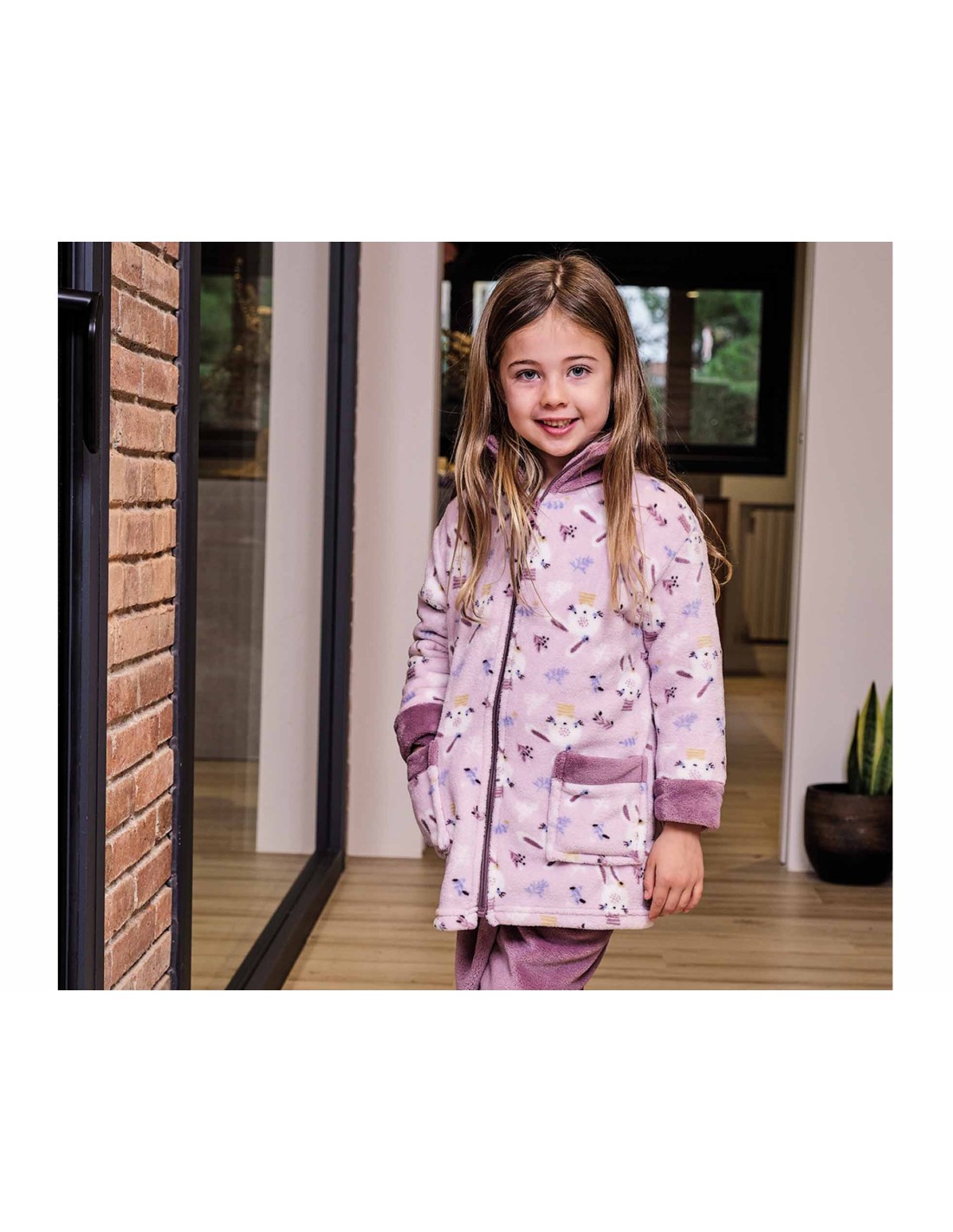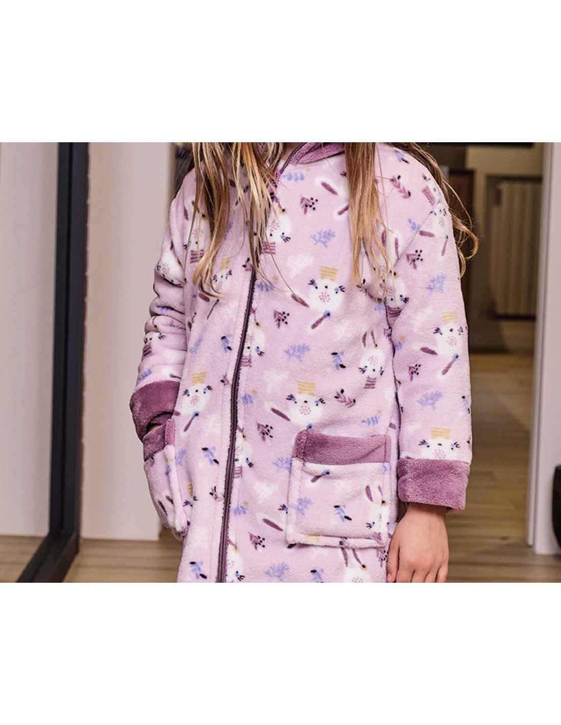 En color malva, totalmente estampada con una preciosa CONEJITA.