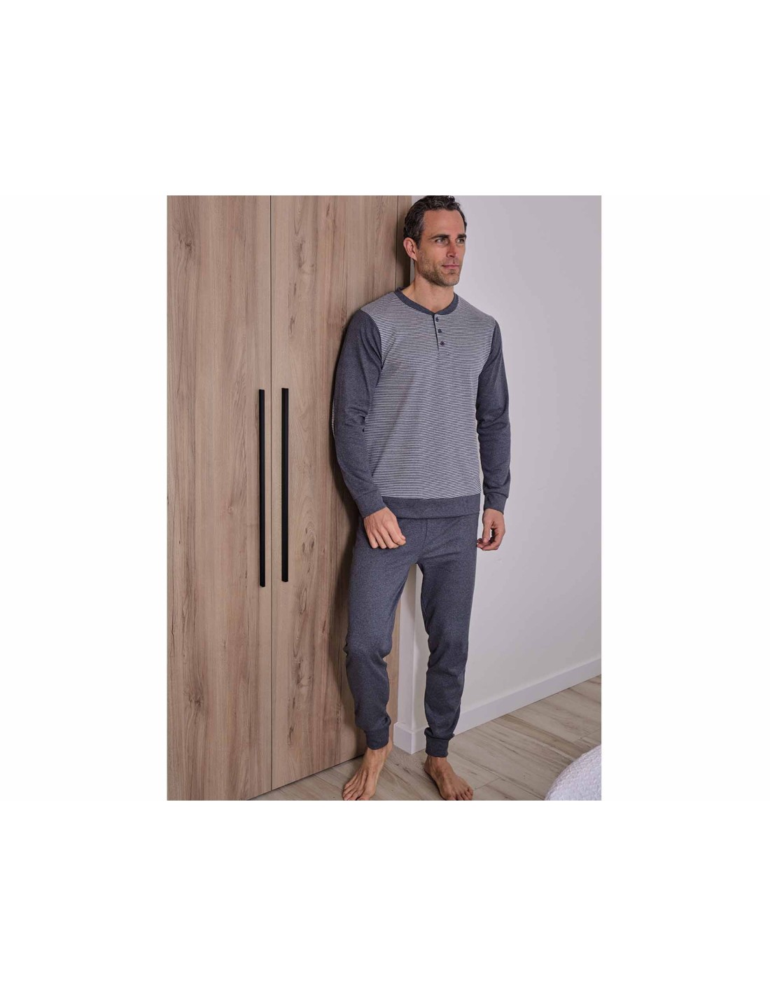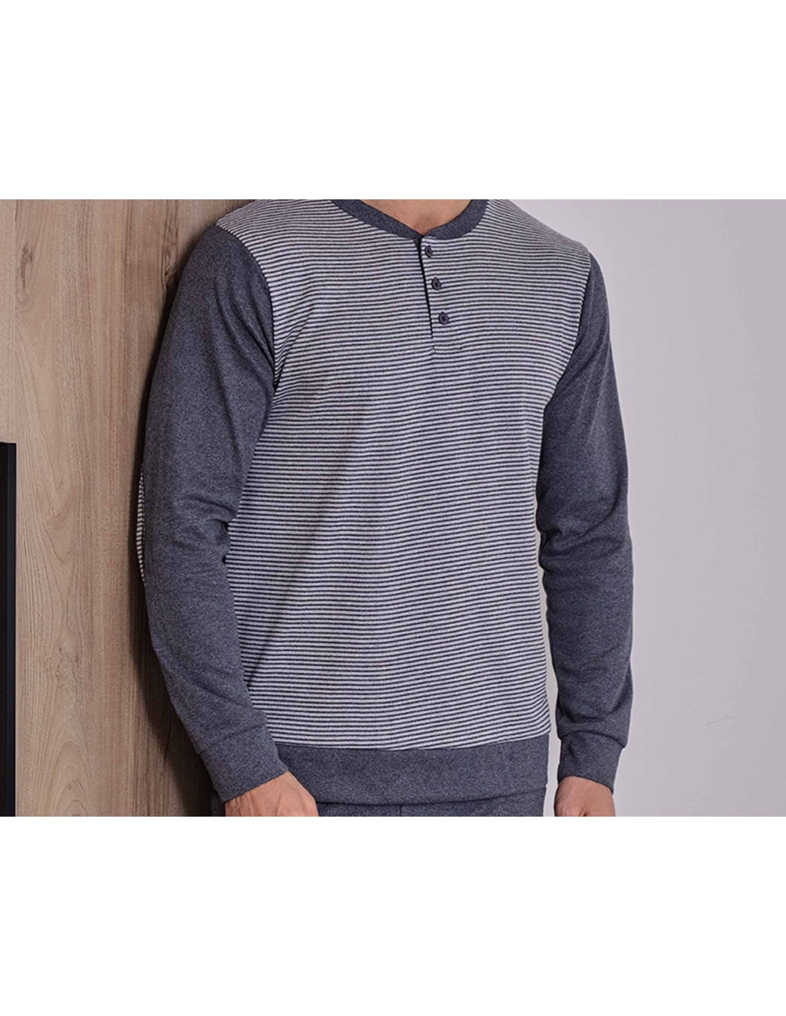 Pijama largo hombre interlock "Rayas finas antracita" 5689 de Muslher