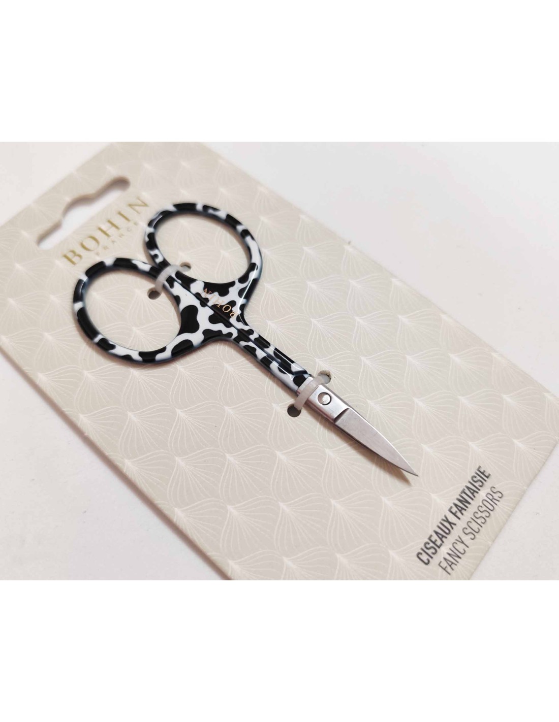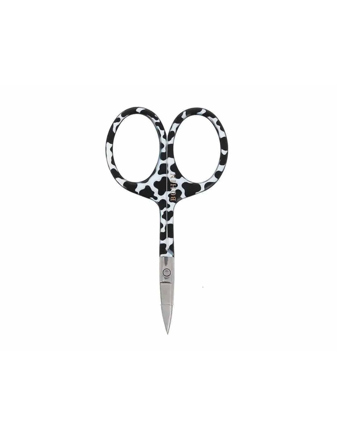 Diseño de fantasía con mangos estampados con un diseño animal print VACA, en blanco y negro.