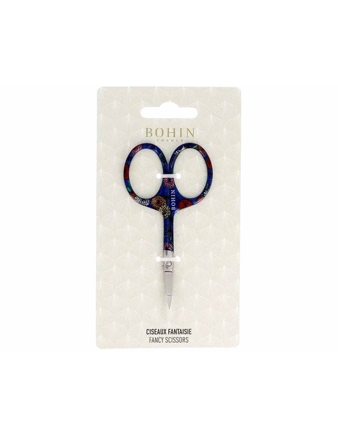 Diseño de fantasía con mangos estampados con un diseño floral, sobre fondo azul.