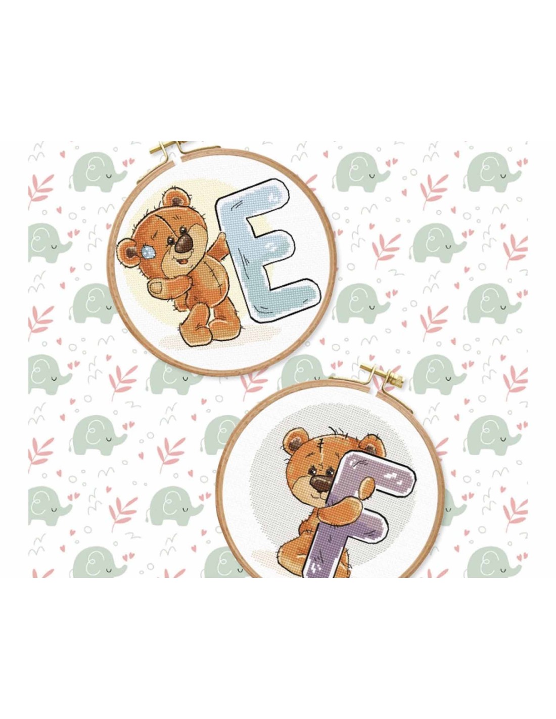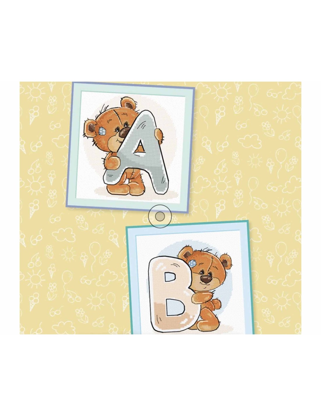 26 letras iniciales, acompañadas cada una de ellas, con un simpático y tierno osito.