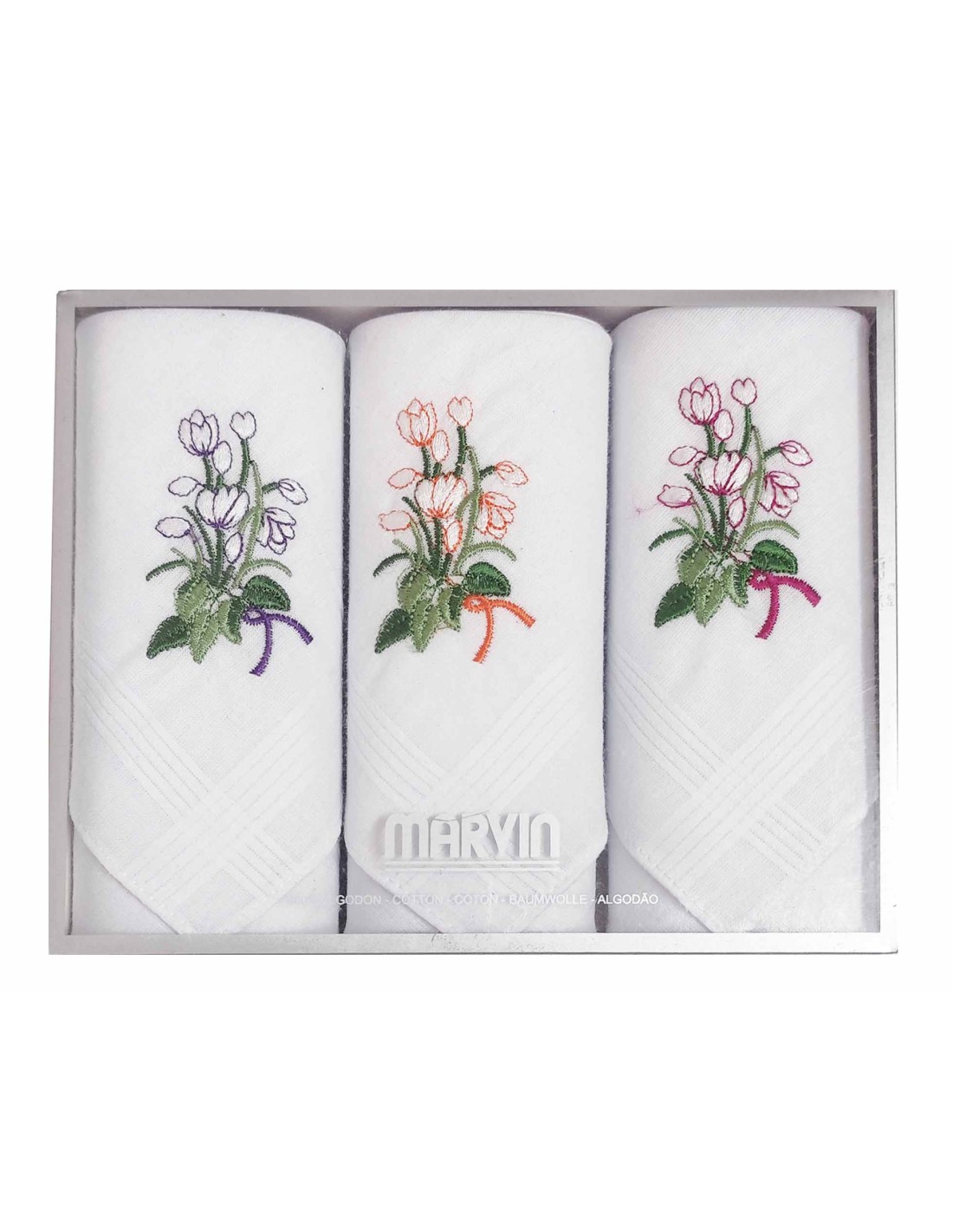 Estuche pañuelos mujer bordados "Carmen" (3 uds) de Marvin