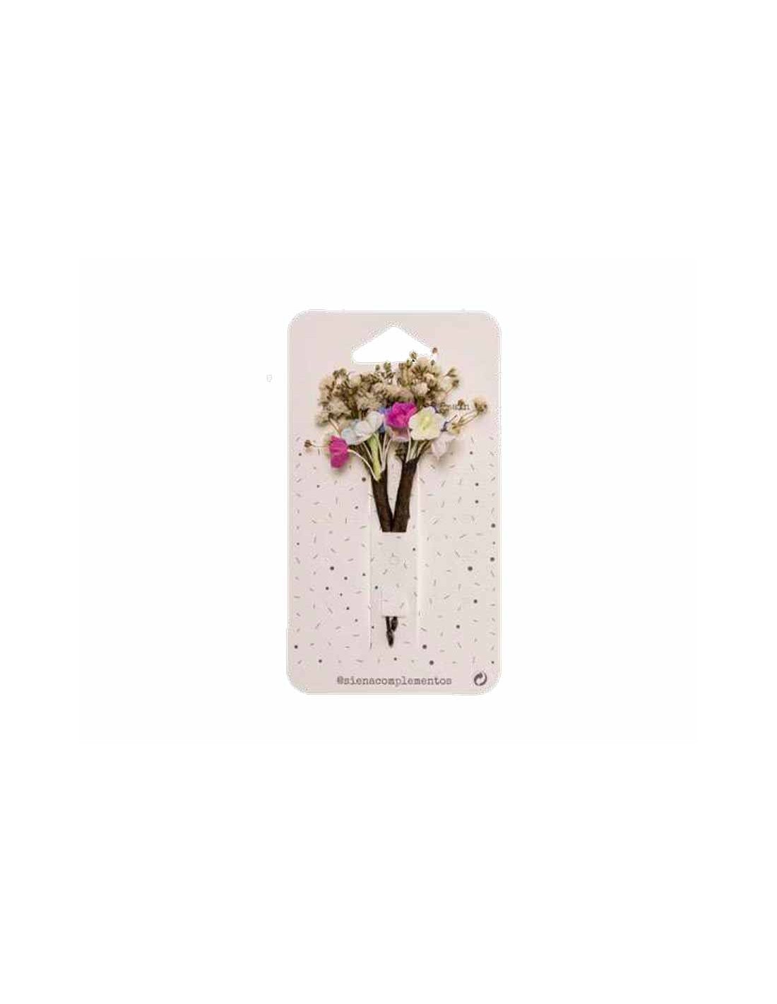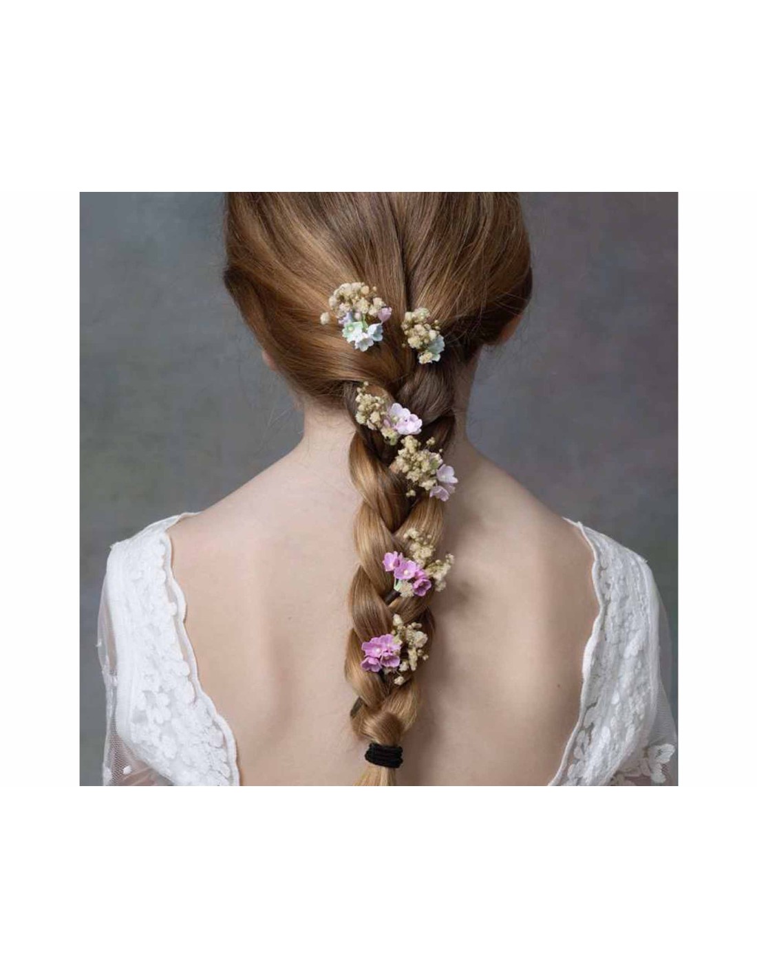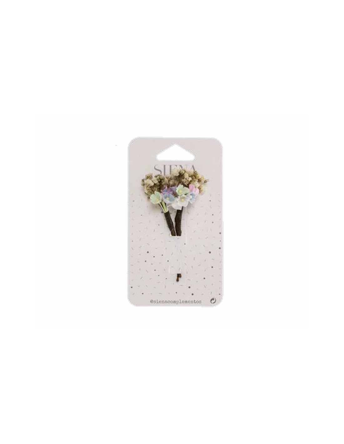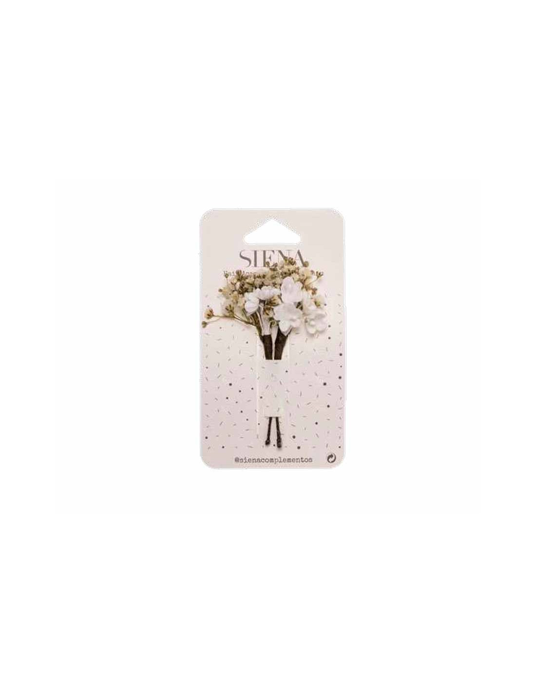 Pinchos para recogidos, con 5 pequeñas flores de papel, combinadas con paniculata.