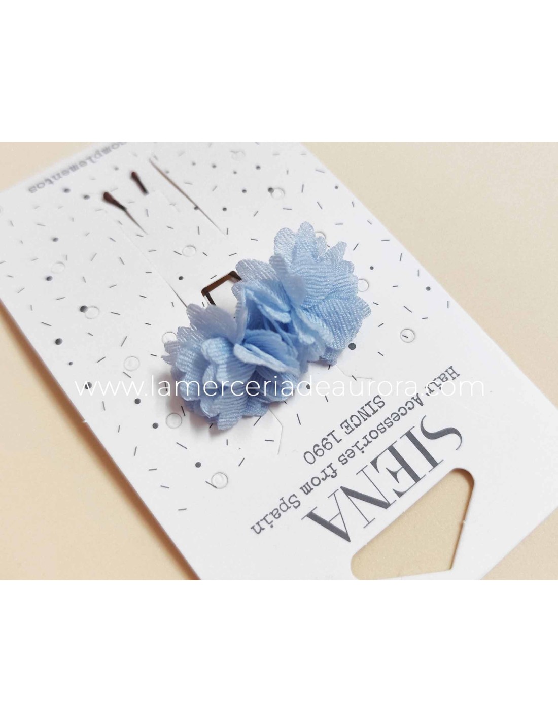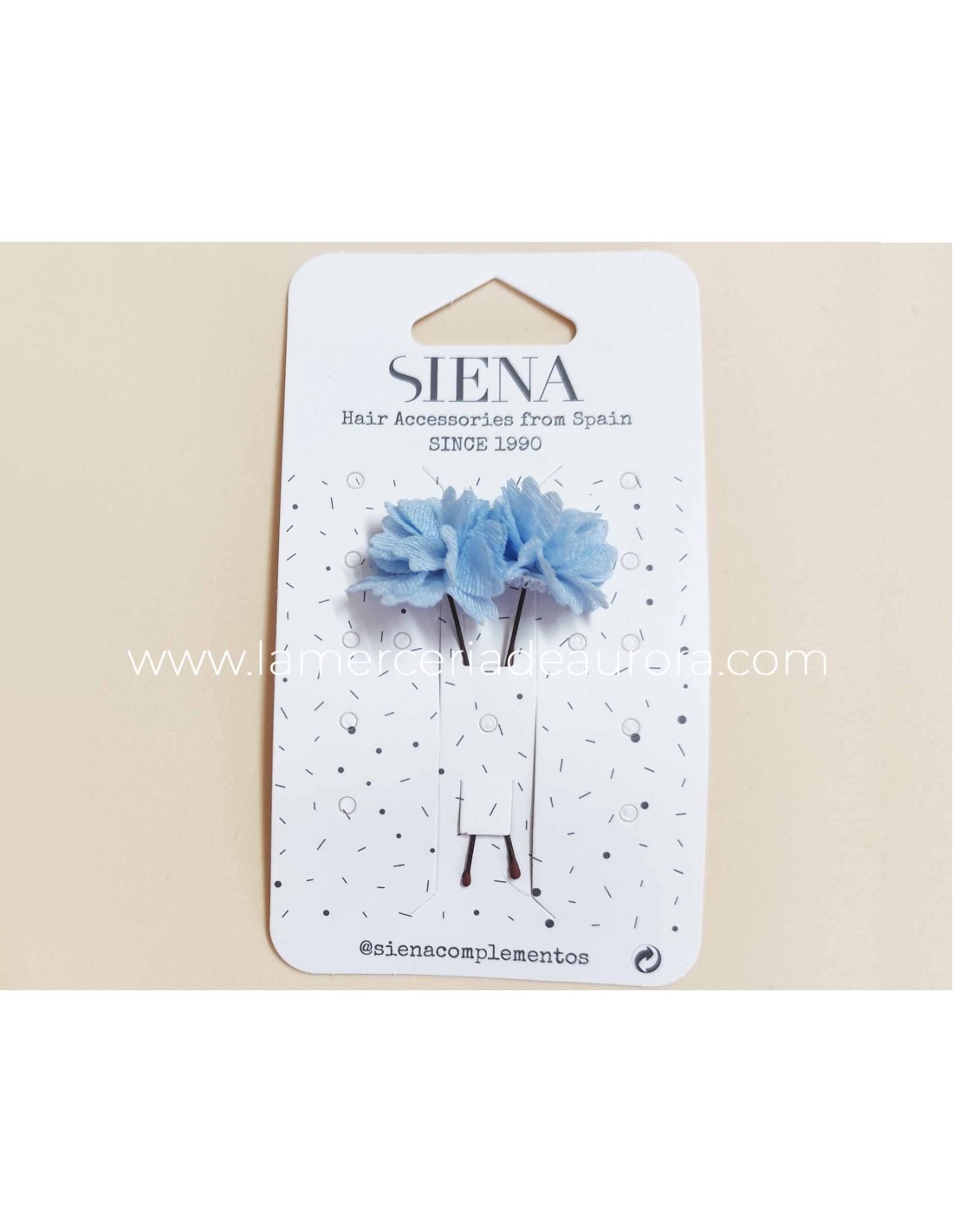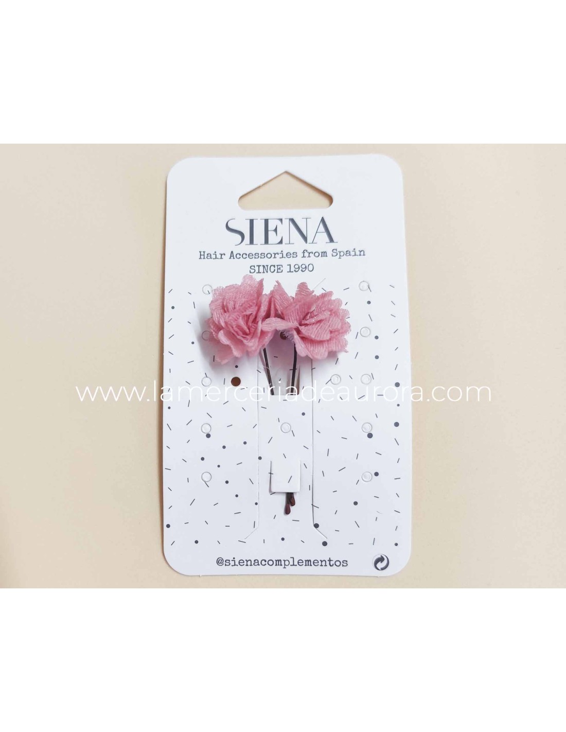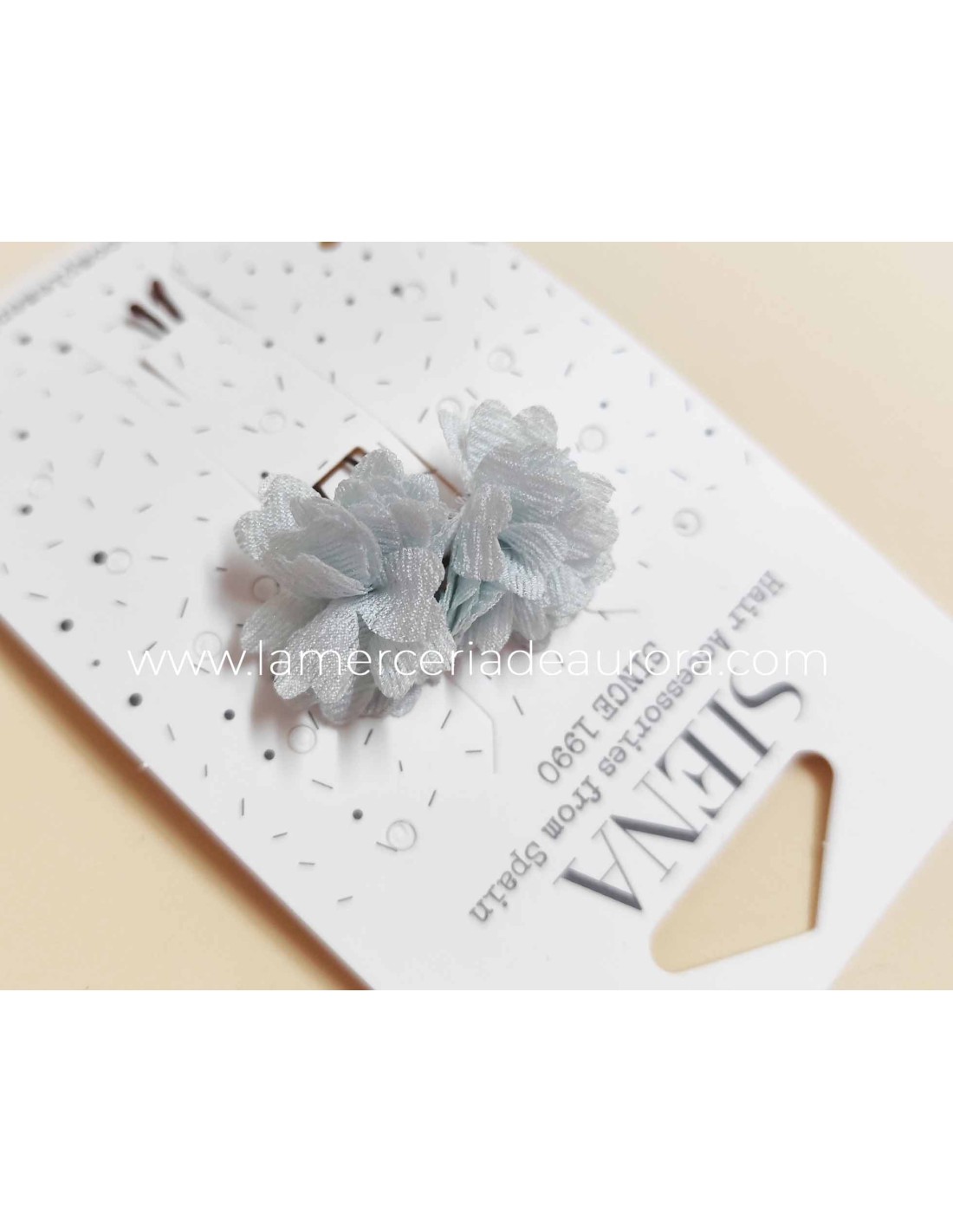 2 pinchos para recogidos, con flores de tela tipo tul rayado.