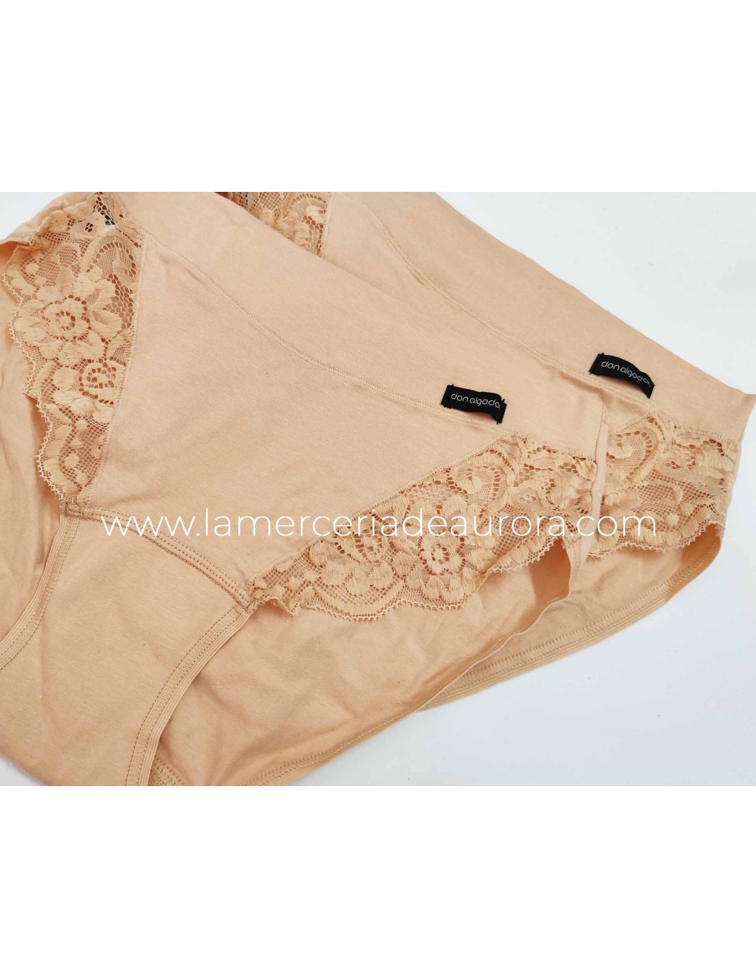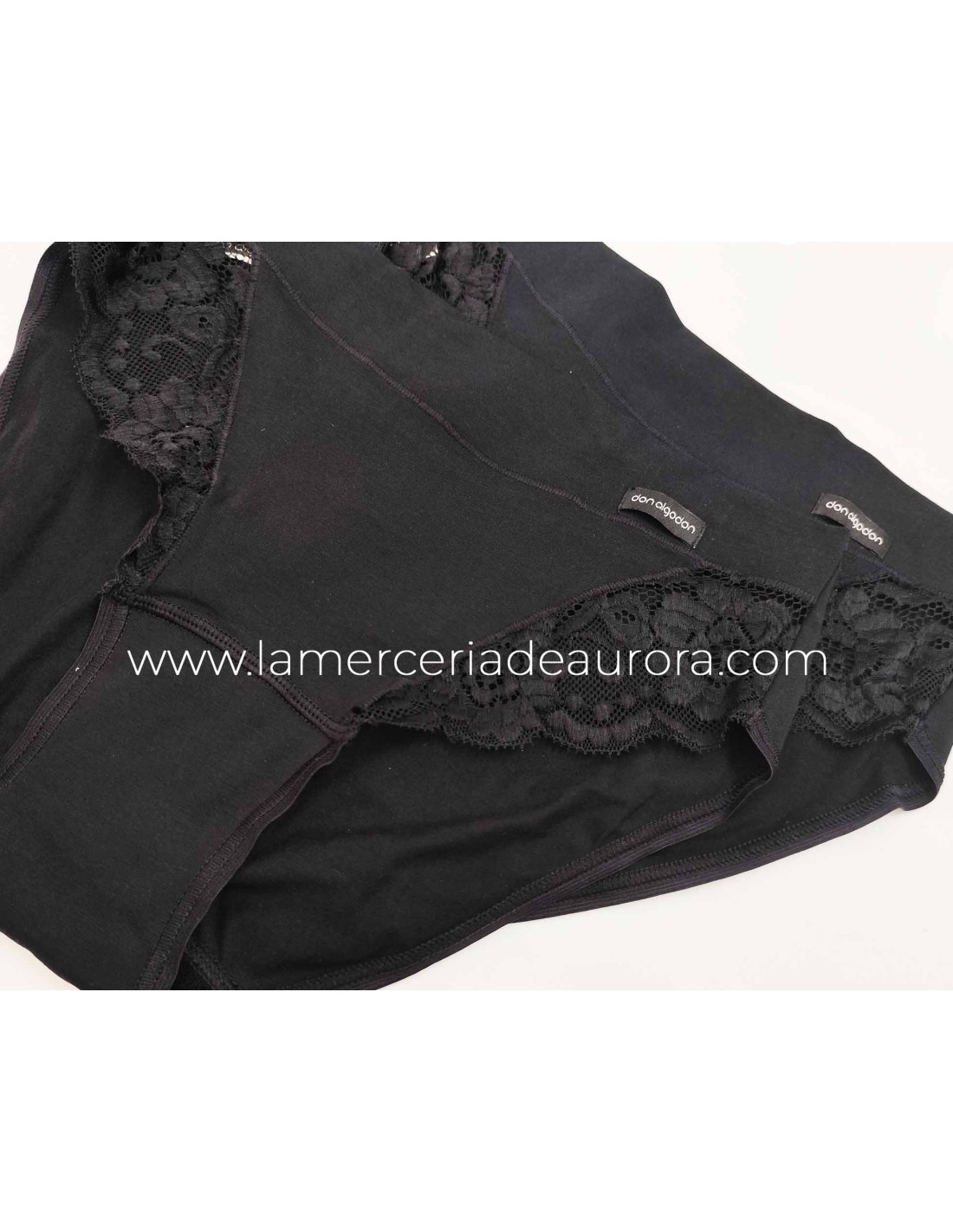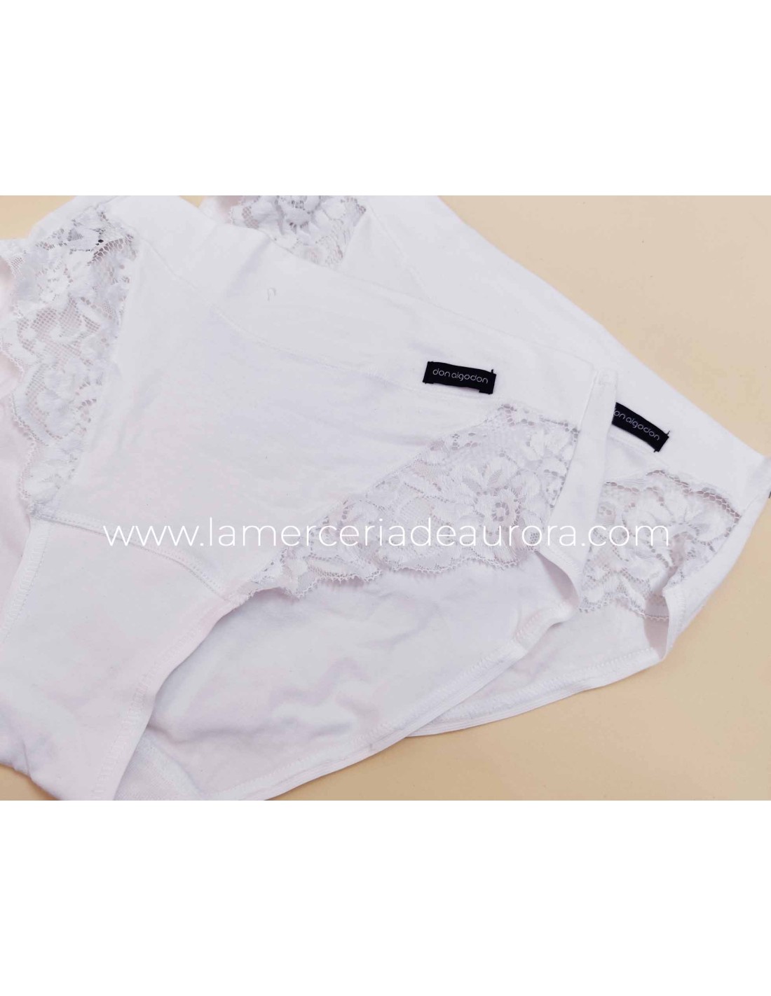 Pack 2 bragas, de algodón elástico, con inserciones de encaje en las laterales.