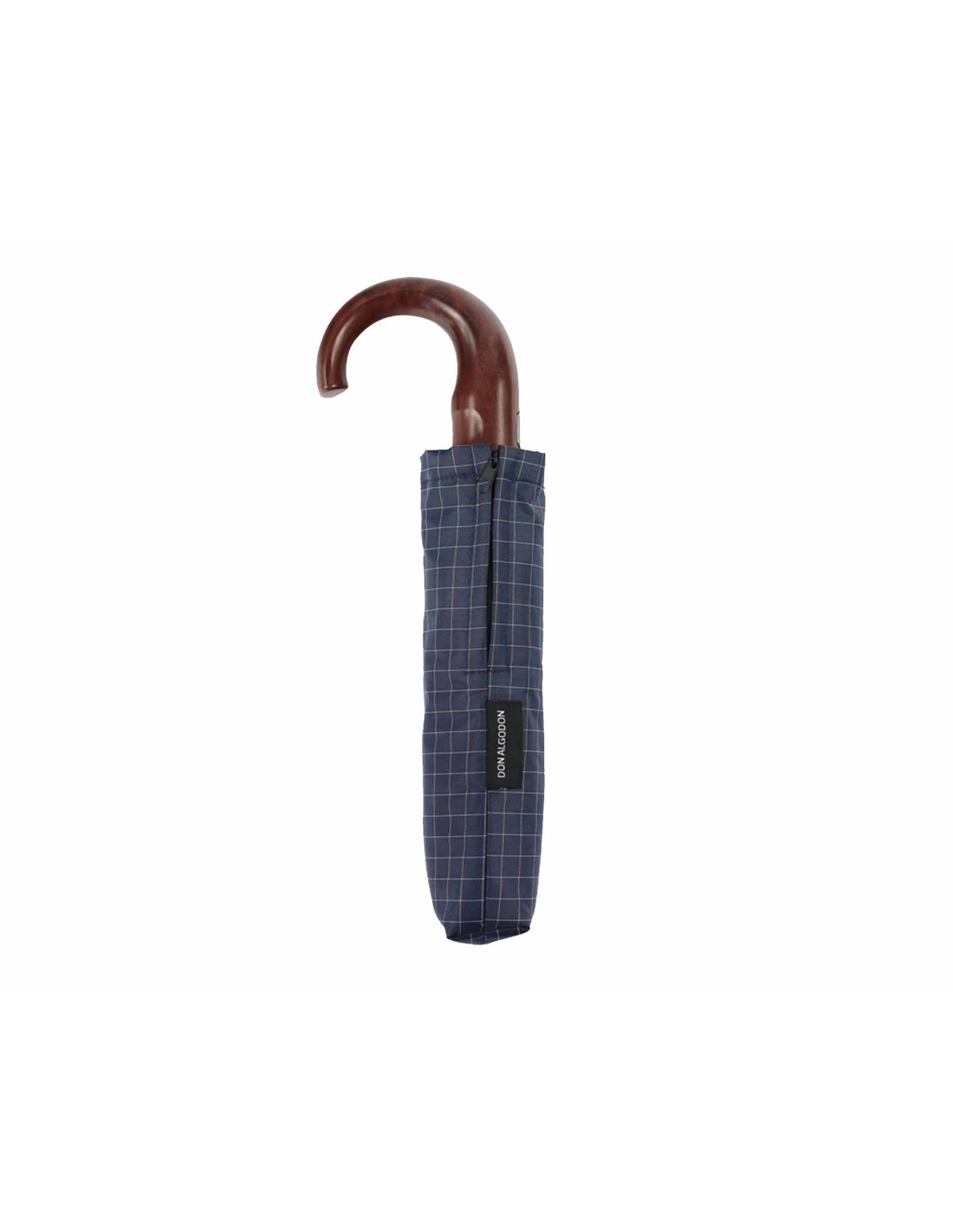 Elegante paraguas plegable de caballero, muy ligero, con mango curvo de madera.