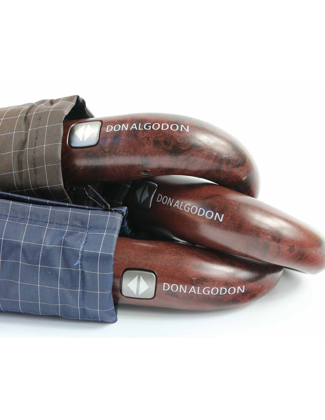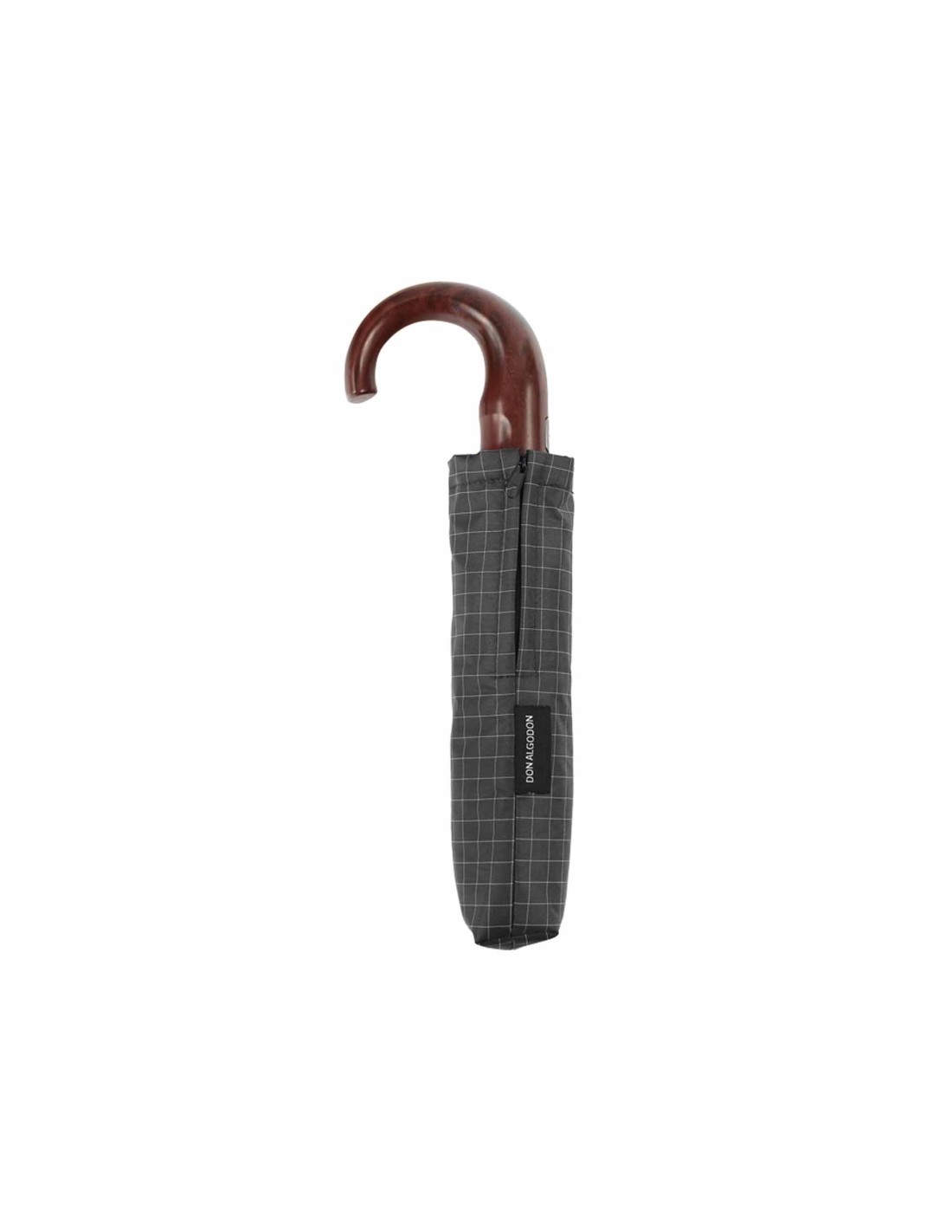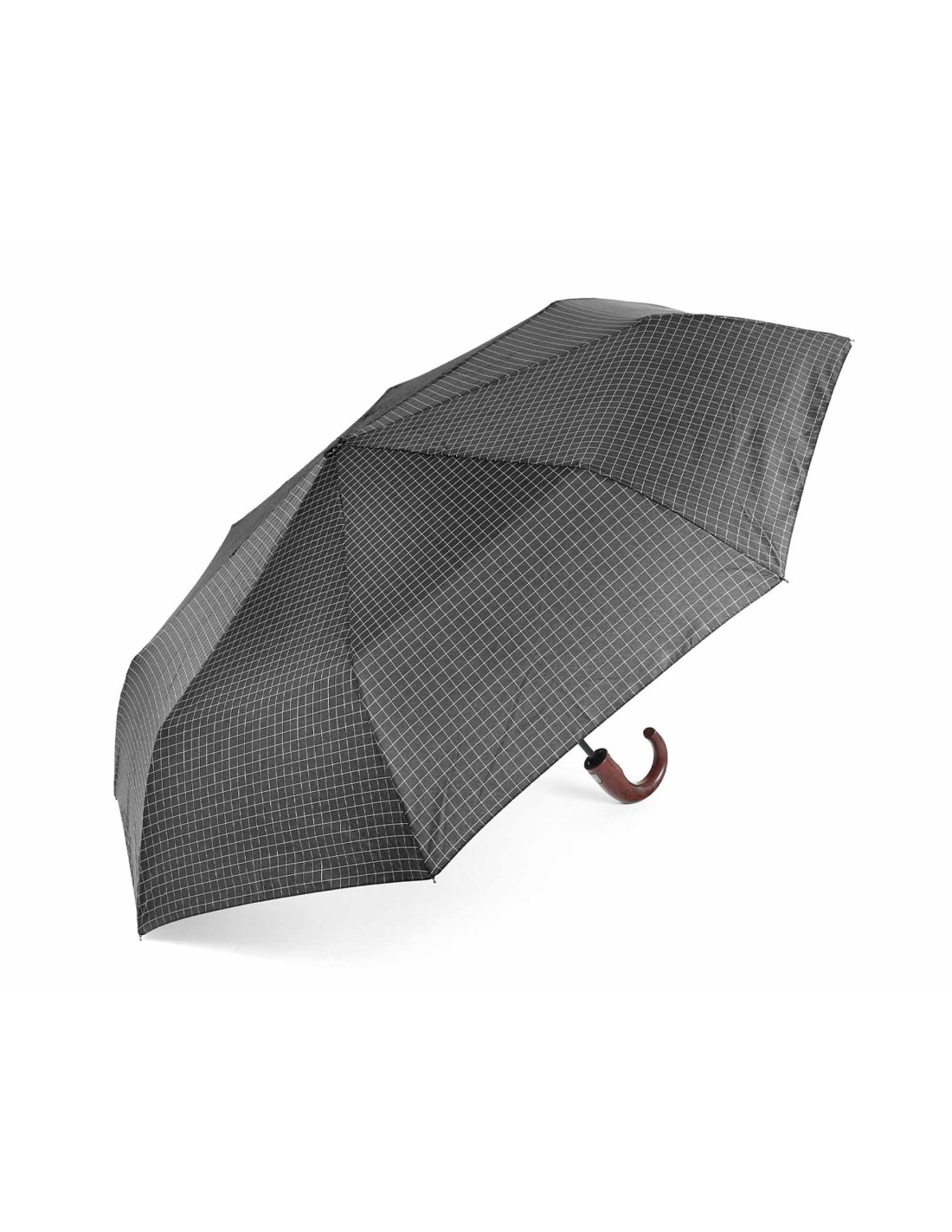 Elegante paraguas plegable de caballero, muy ligero, con mango curvo de madera.