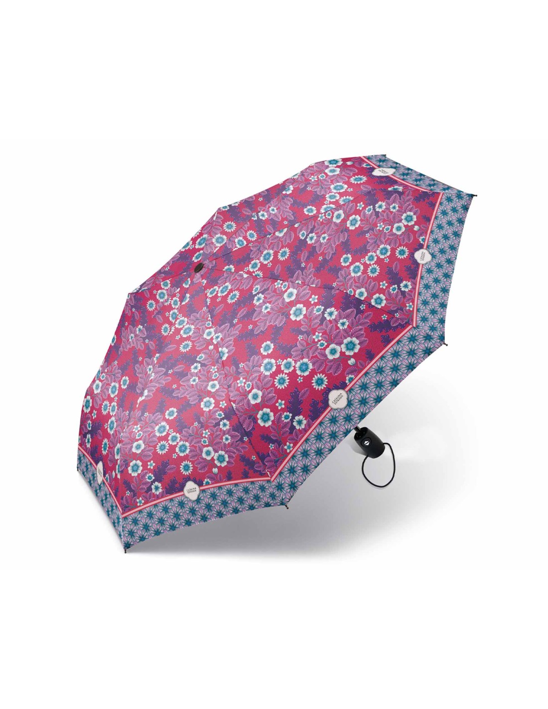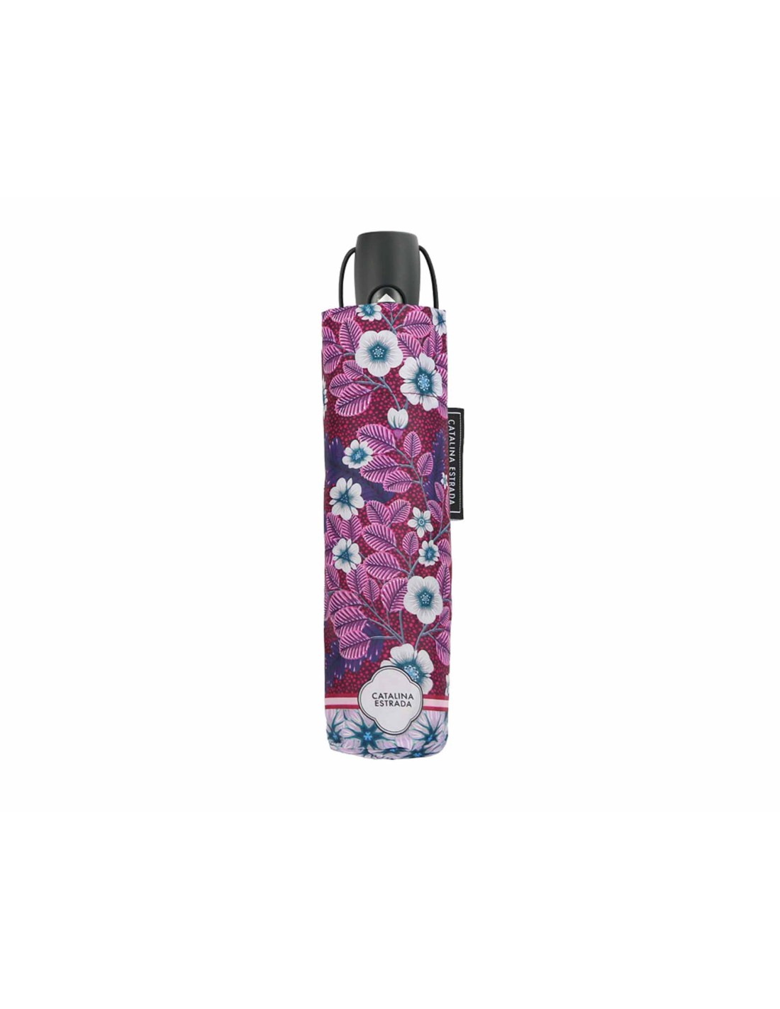 Alegre estampado FLORAL, en tonos rosa, combinado con burdeos y azul.