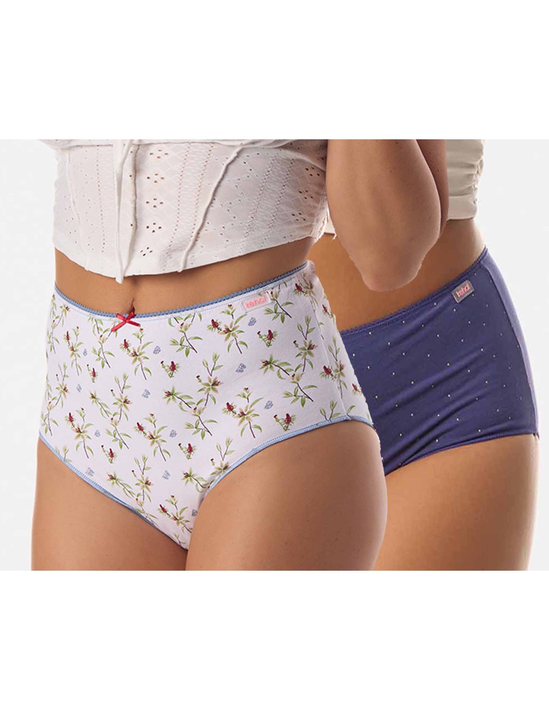 Pack 2 bragas altas, para mujer, de algodón fantasía.