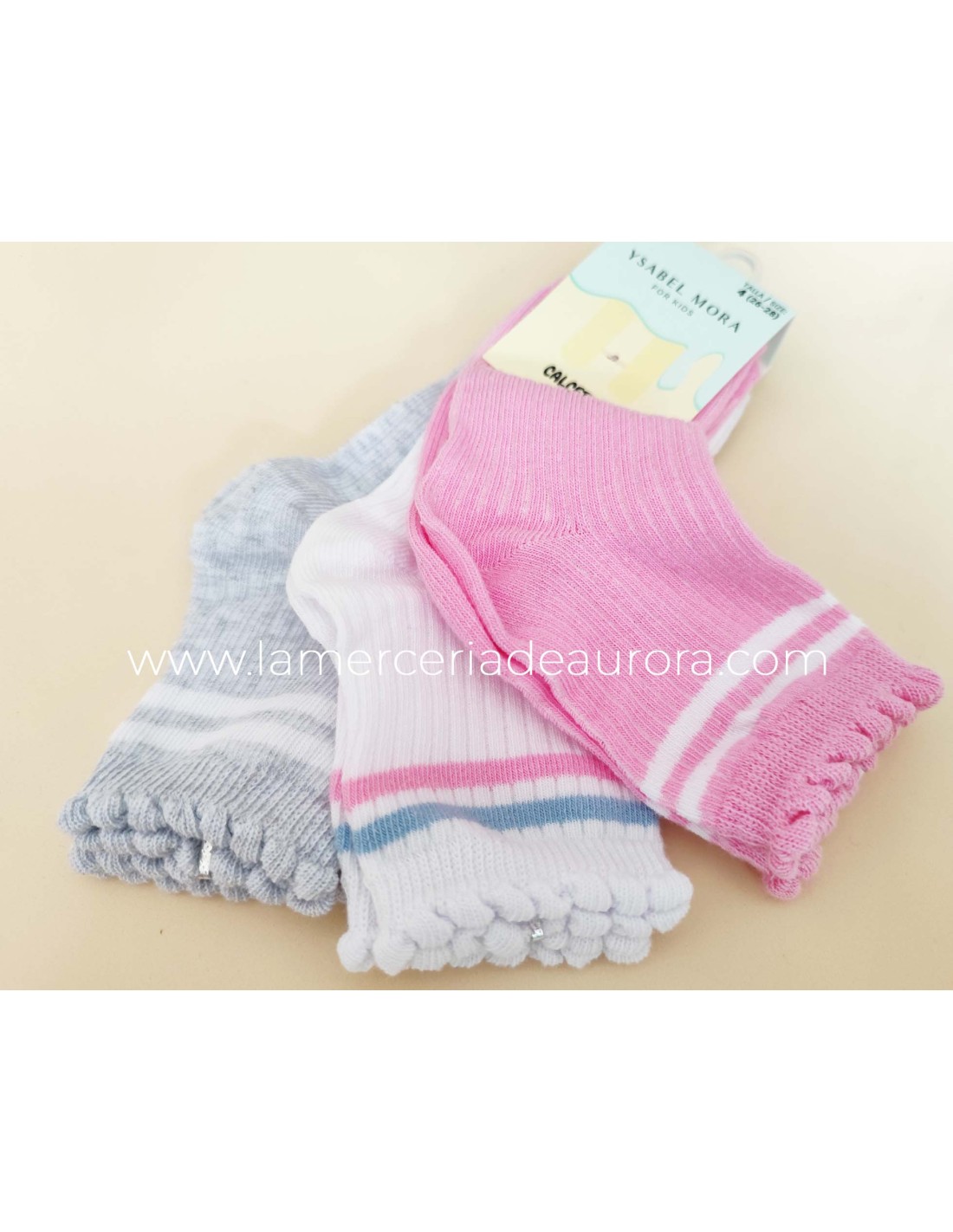 Calcetines cortos de algodón, FANTASÍA RAYAS, con PUÑO RIZADO, para chicas en pack de 3 pares.