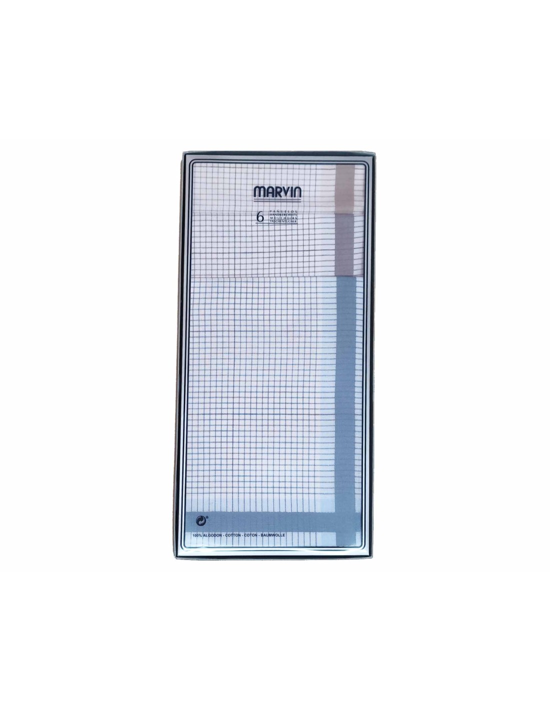 Estuche pañuelos de caballero fondo blanco (6 uds) "Cuadros" de Marvin