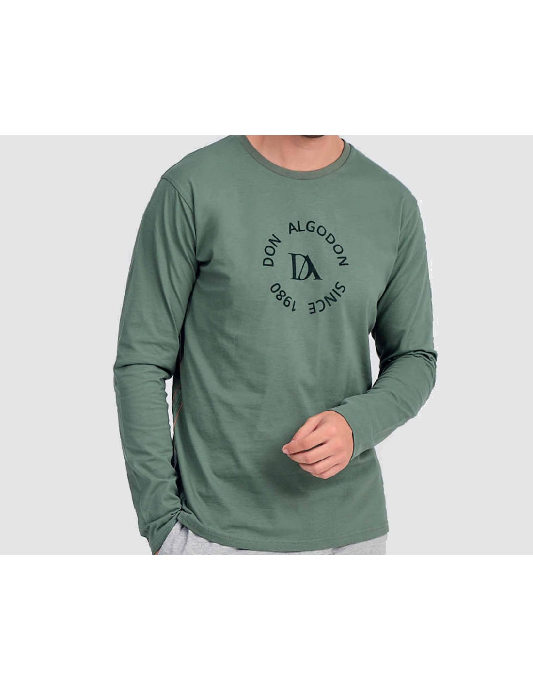 Pijama largo para hombre, en tejido de algodón tipo camiseta, ideal para entretiempo.