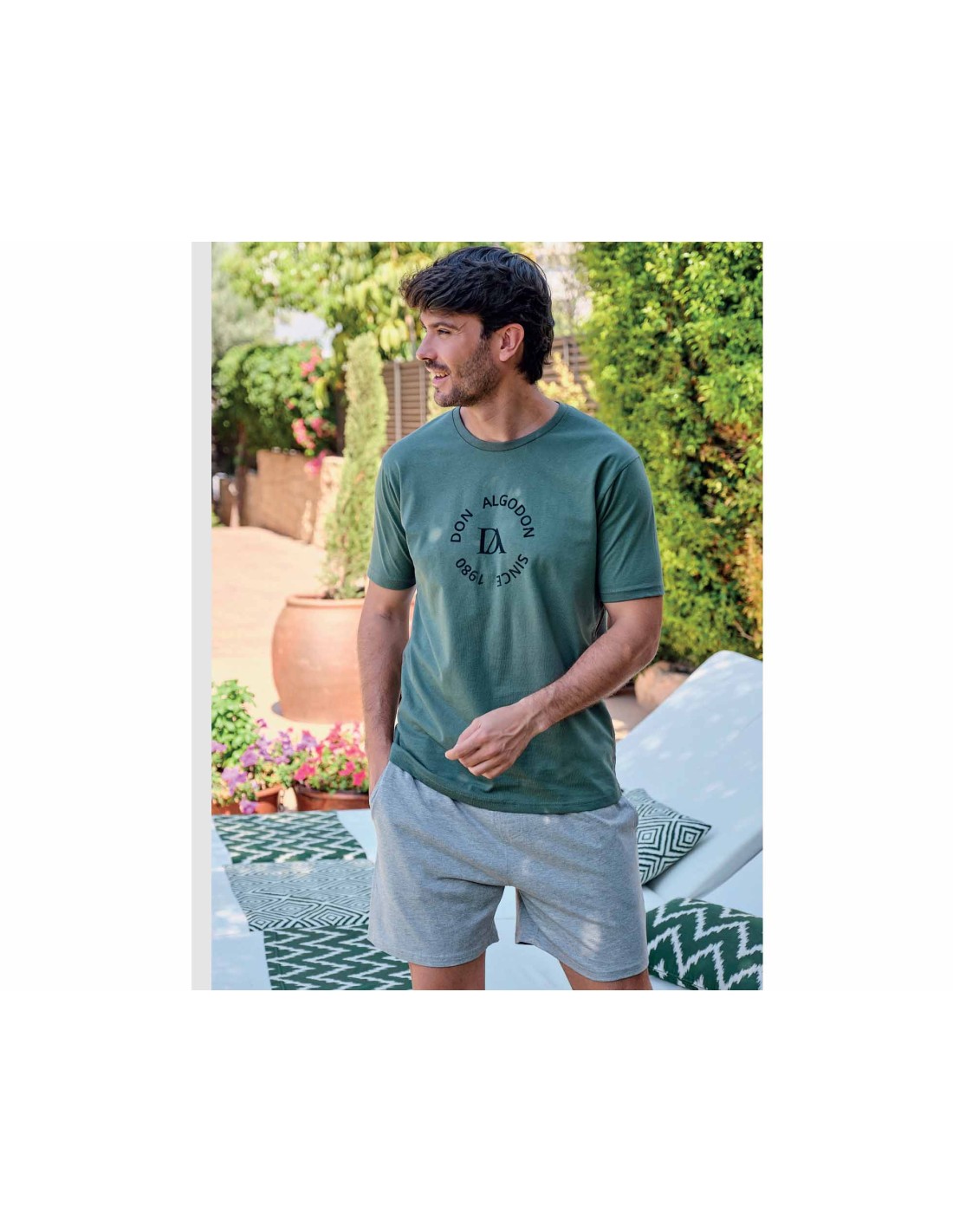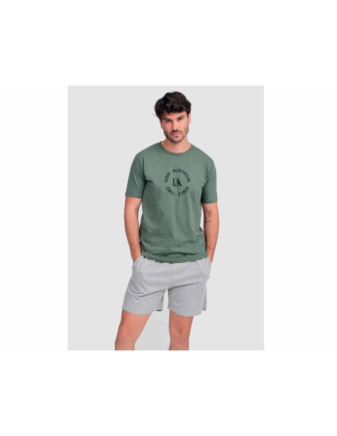 Pijama corto para hombre, en tejido de algodón tipo camiseta, ideal para verano.
