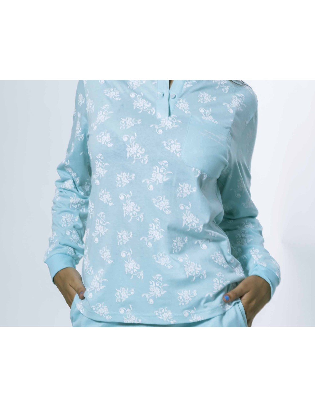 Pijama para mujer, de algodón fino, en un agradable color verde, para entretiempo.