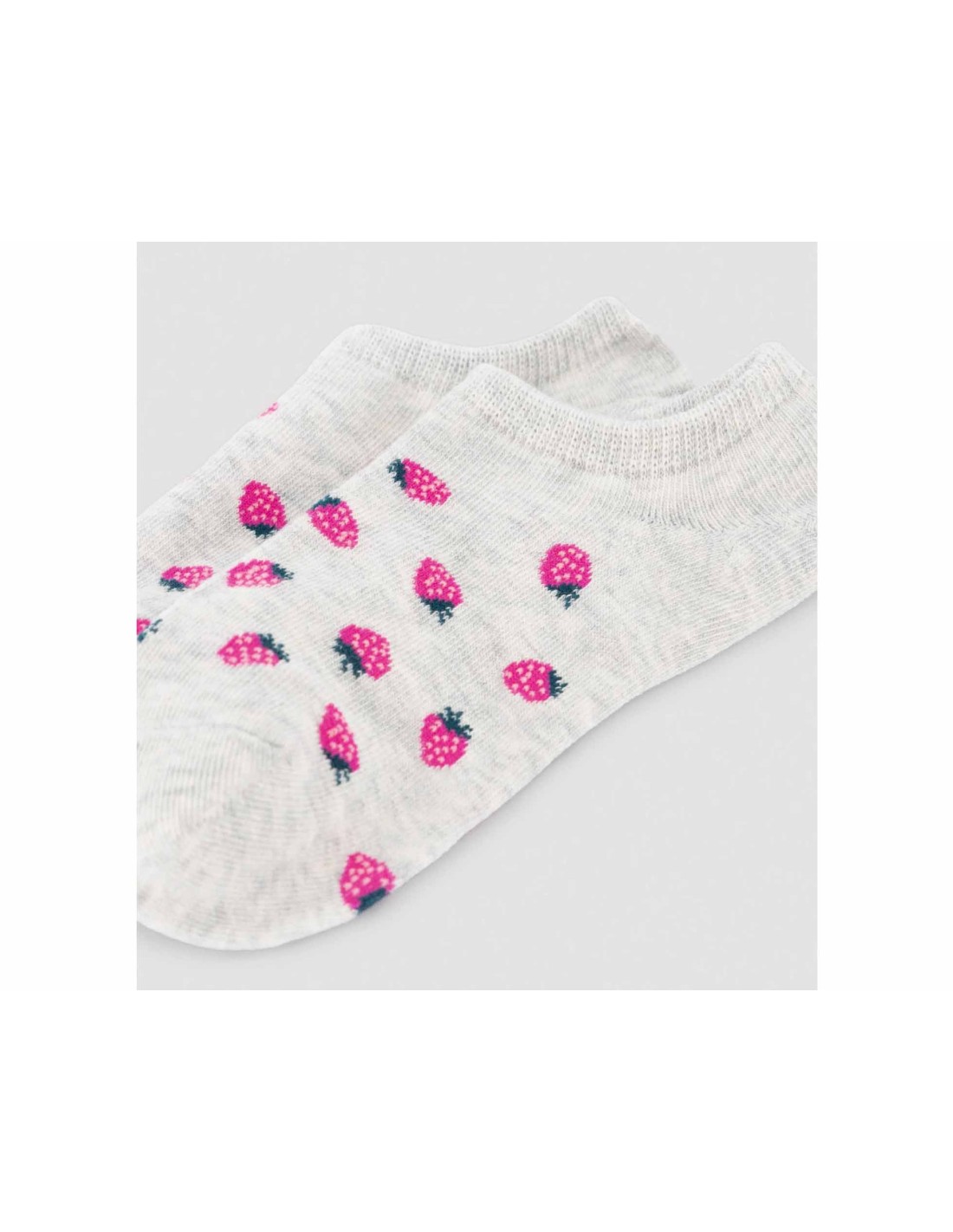 Calcetines invisibles de algodón para mujer, en color gris claro, con pequeñas fresas.