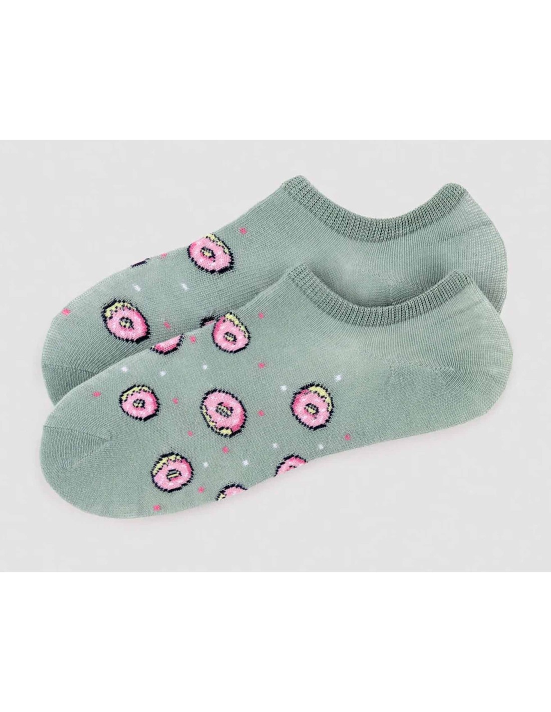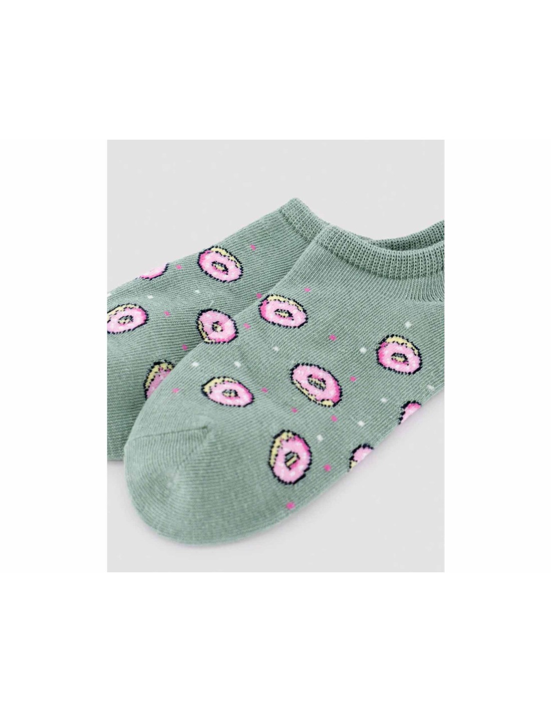 Calcetines invisibles de algodón para mujer, en color verde, con deliciosas donas de fresa.