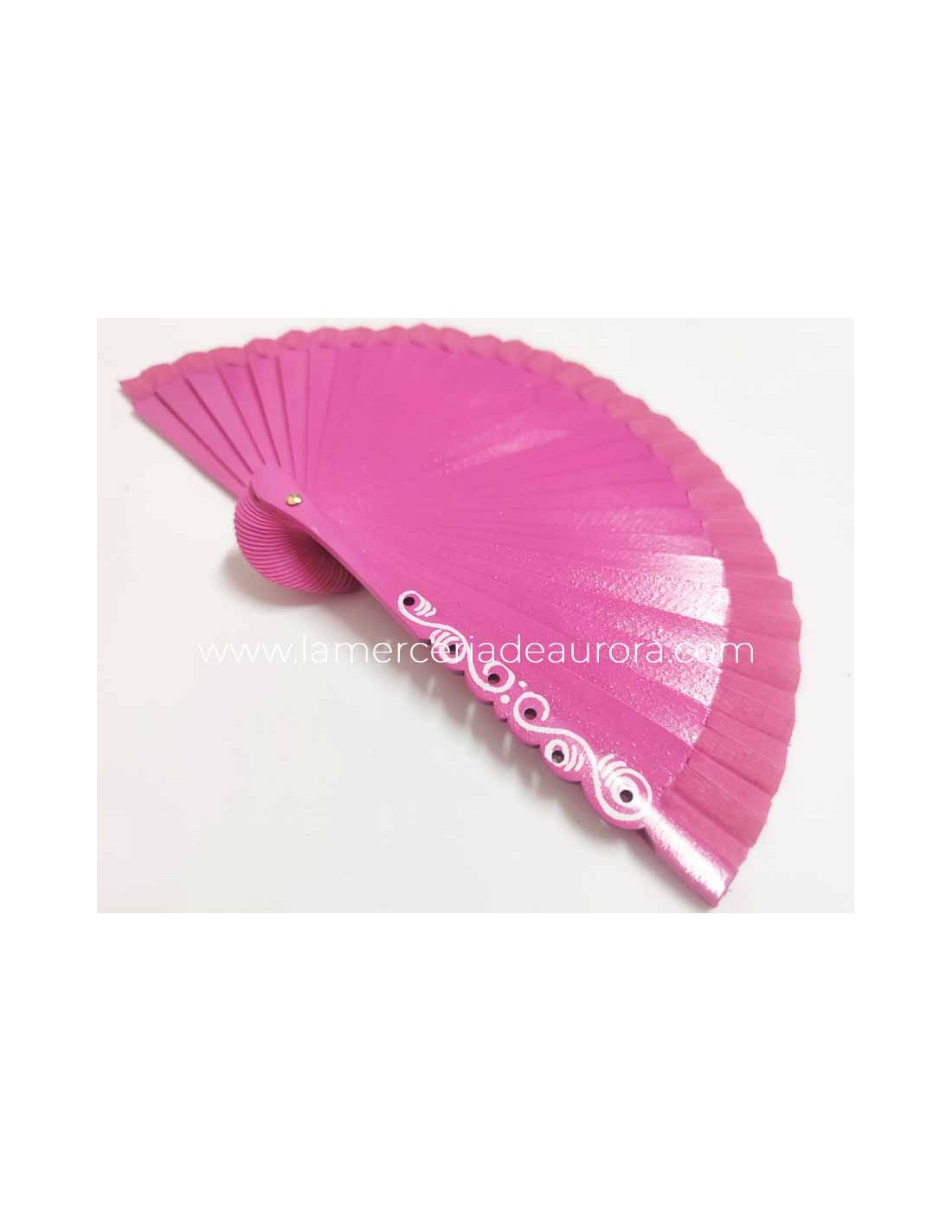 Abanico madera liso (15cm) "Barroco fucsia"